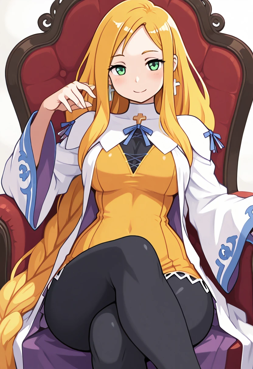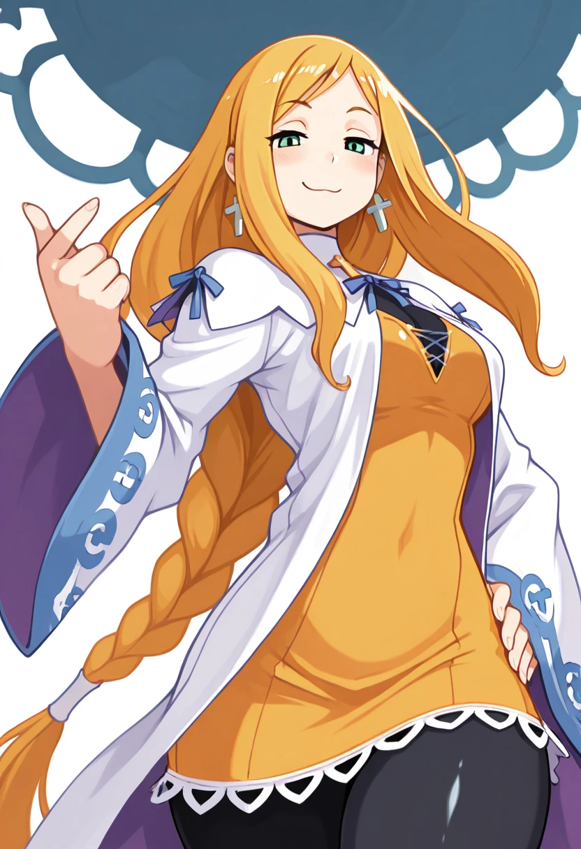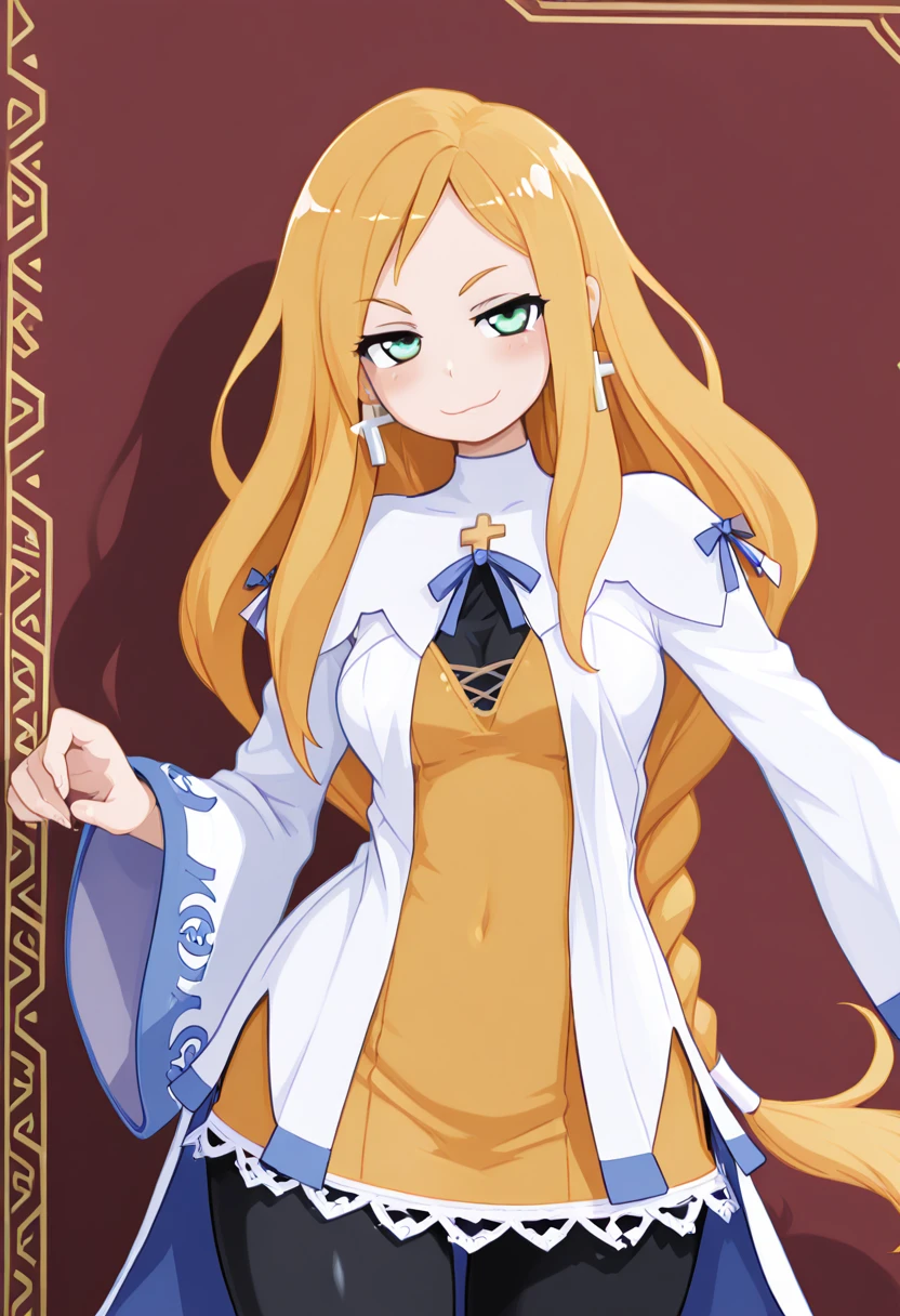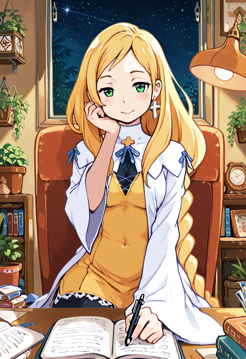 zzAlouette, green eyes, blonde hair, long hair, white dress, ribbon, cross earrings,