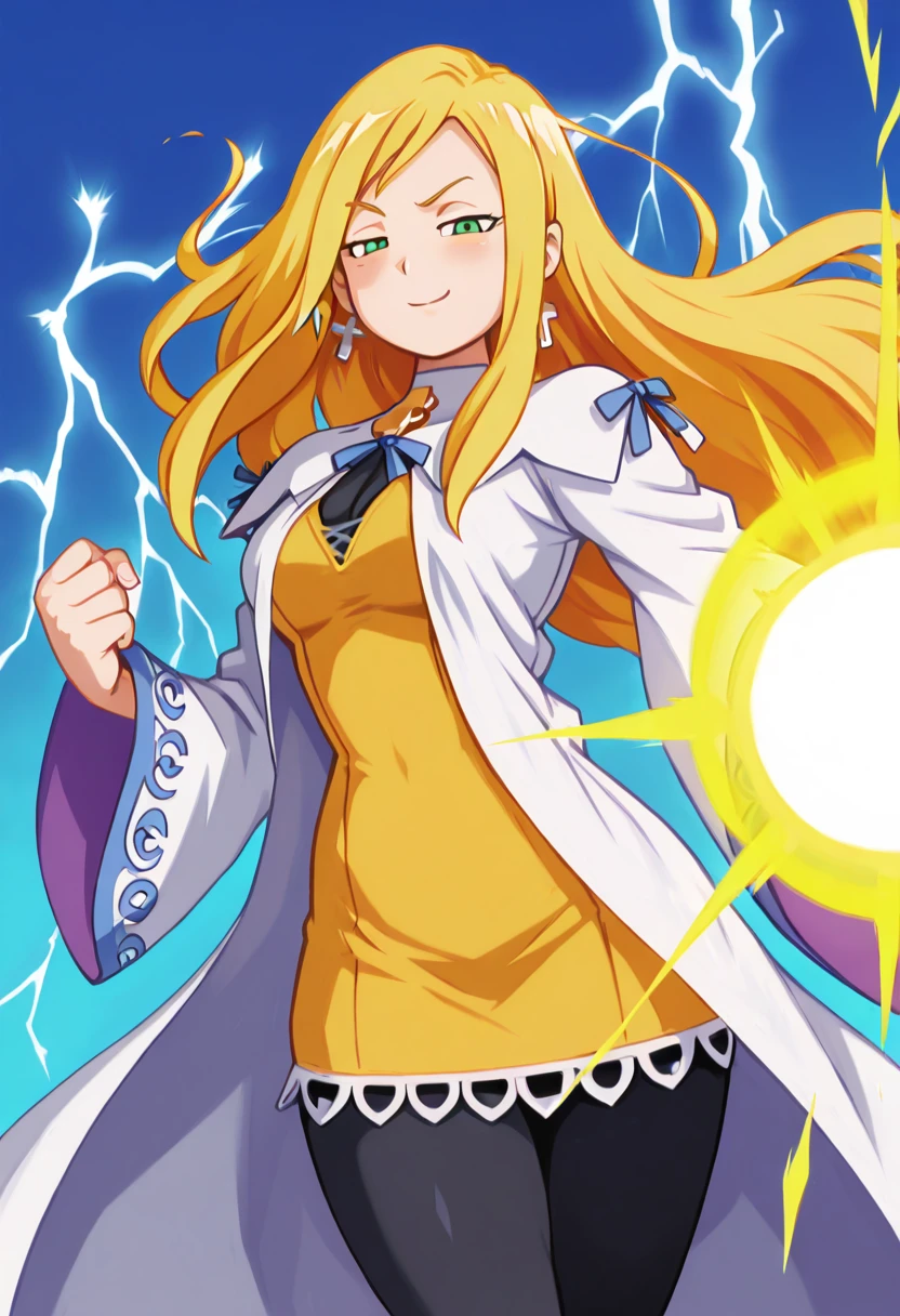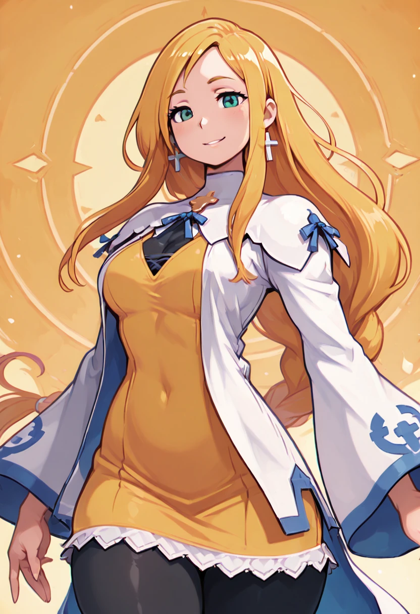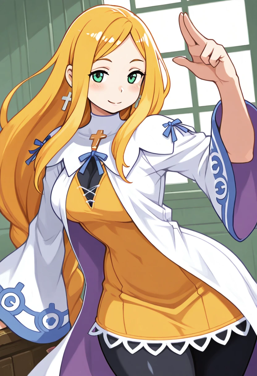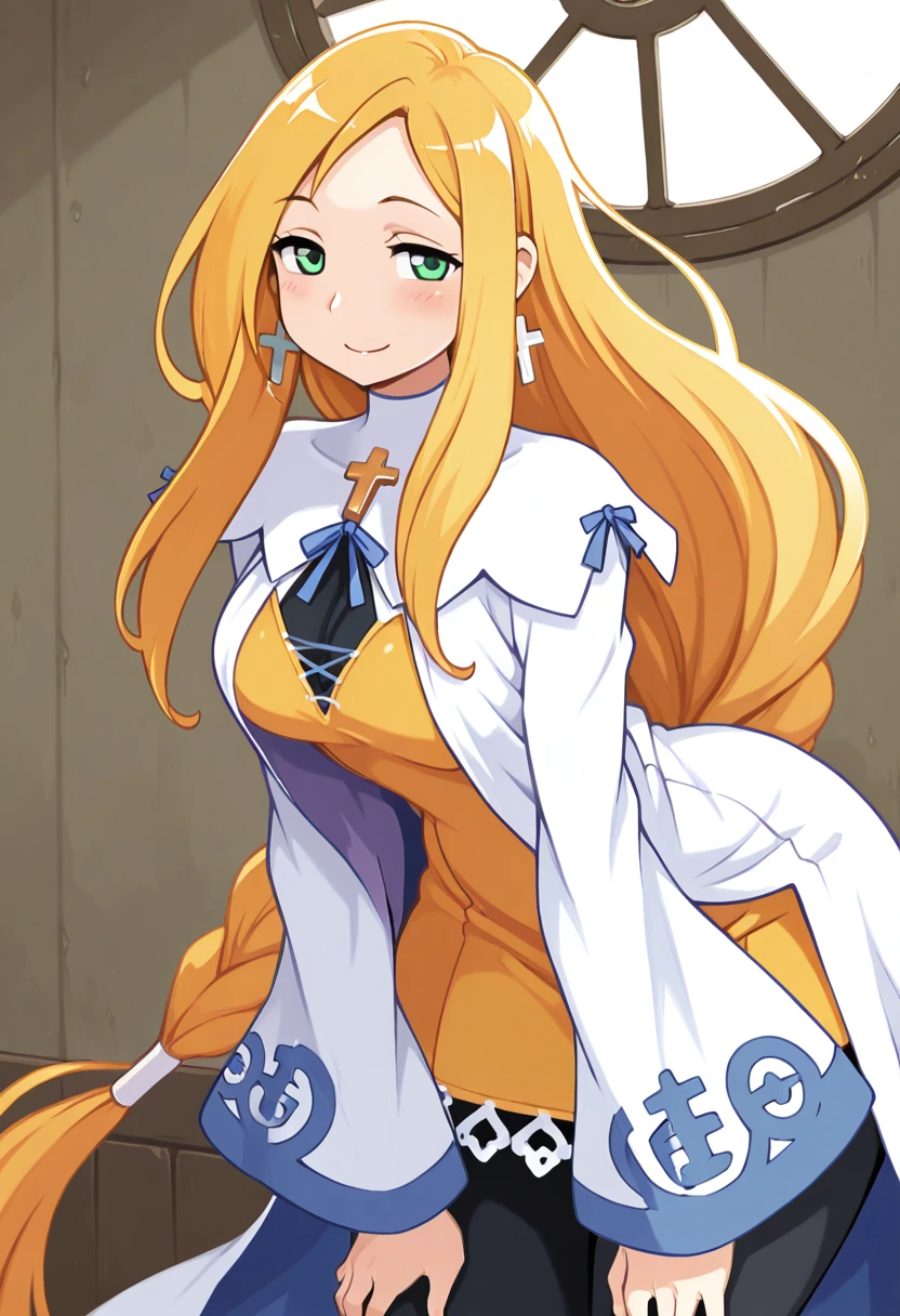 zzAlouette, green eyes, blonde hair, long hair, white dress, ribbon, cross earrings,
