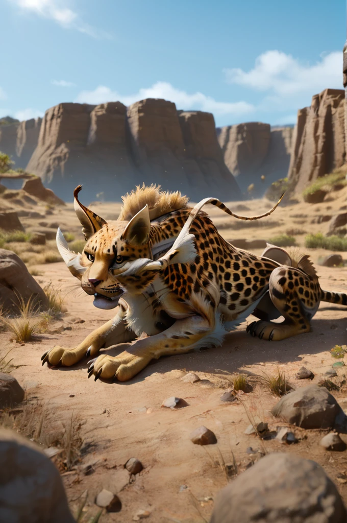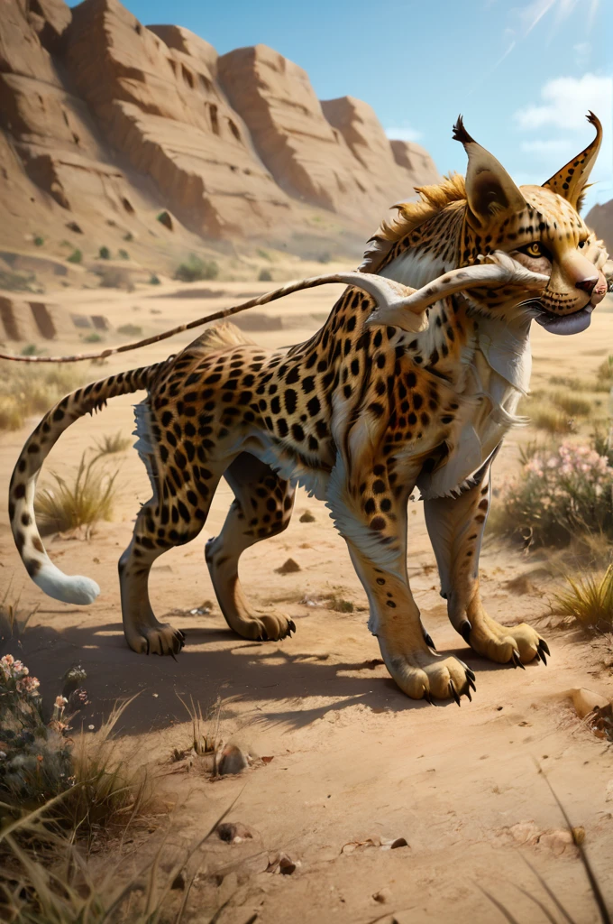 Additional prompts: yellow fur, black dotted, long whiskers