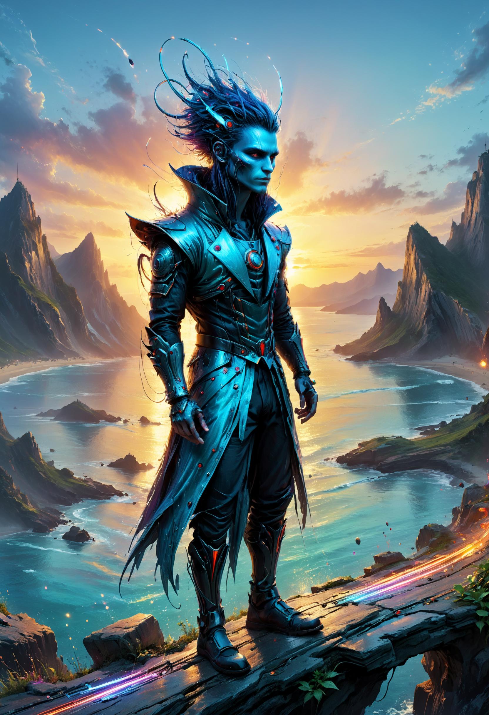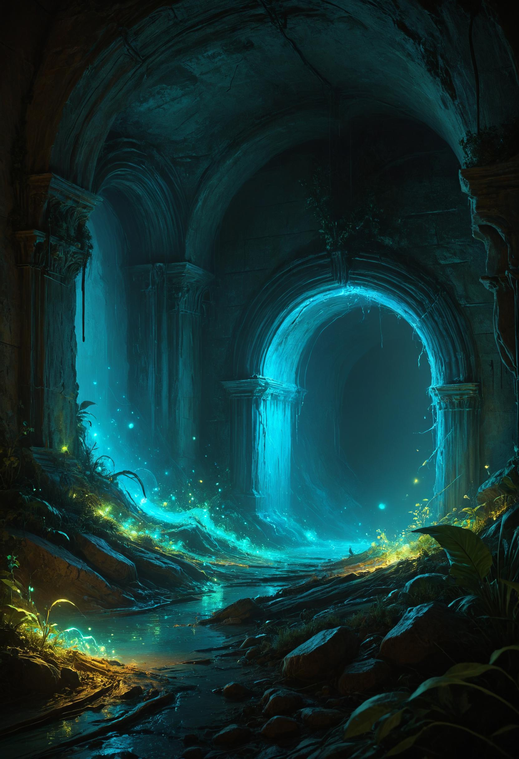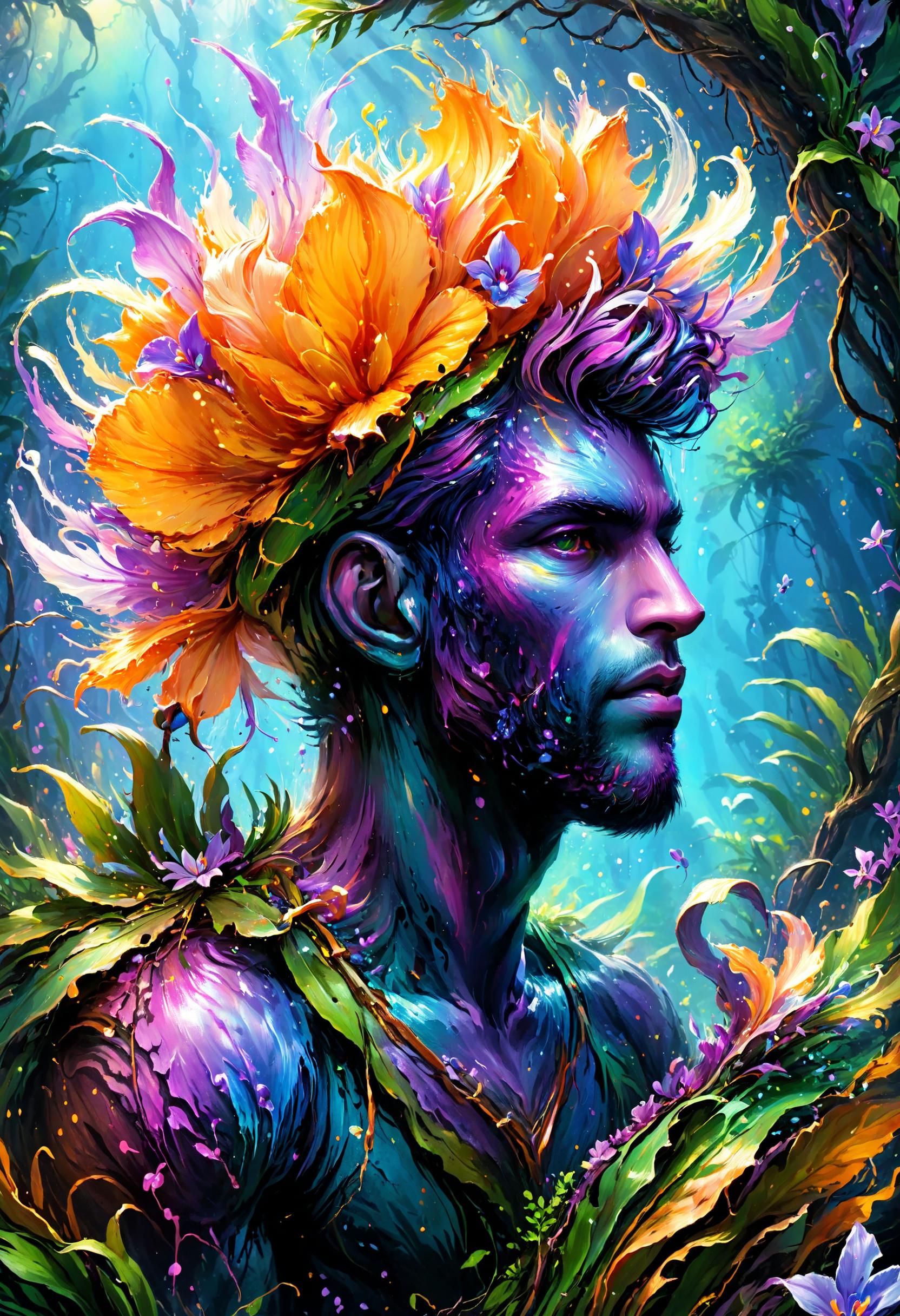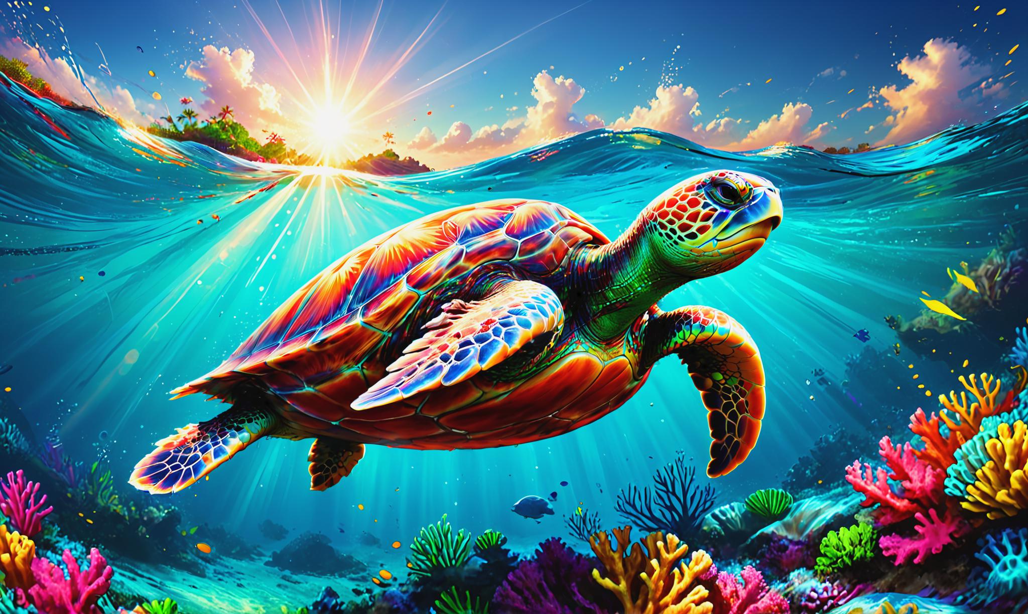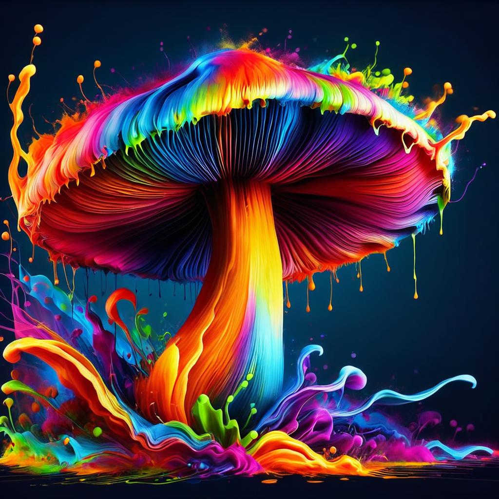 The style of this artwork is a digital abstract, characterized by its psychedelic vibrancy and dynamic fluidity. It harnesses an intense spectrum of fluorescent colors, applied in a manner that mimics the spontaneous flow of ink, creating a lively and surreal visual symphony.