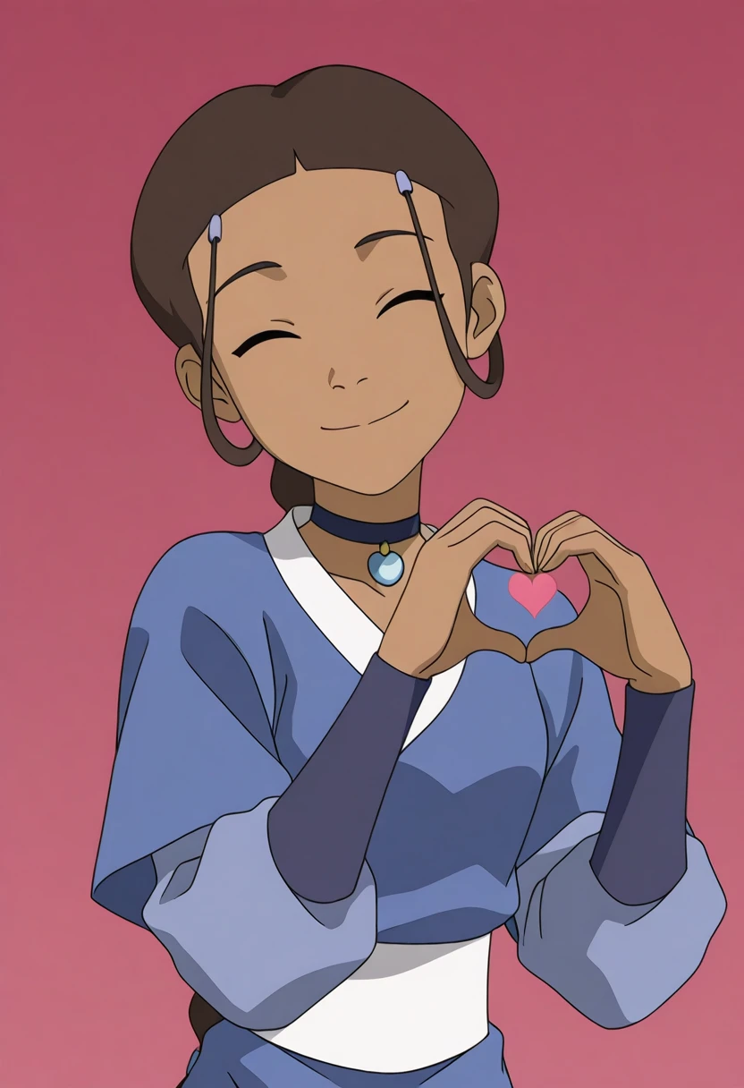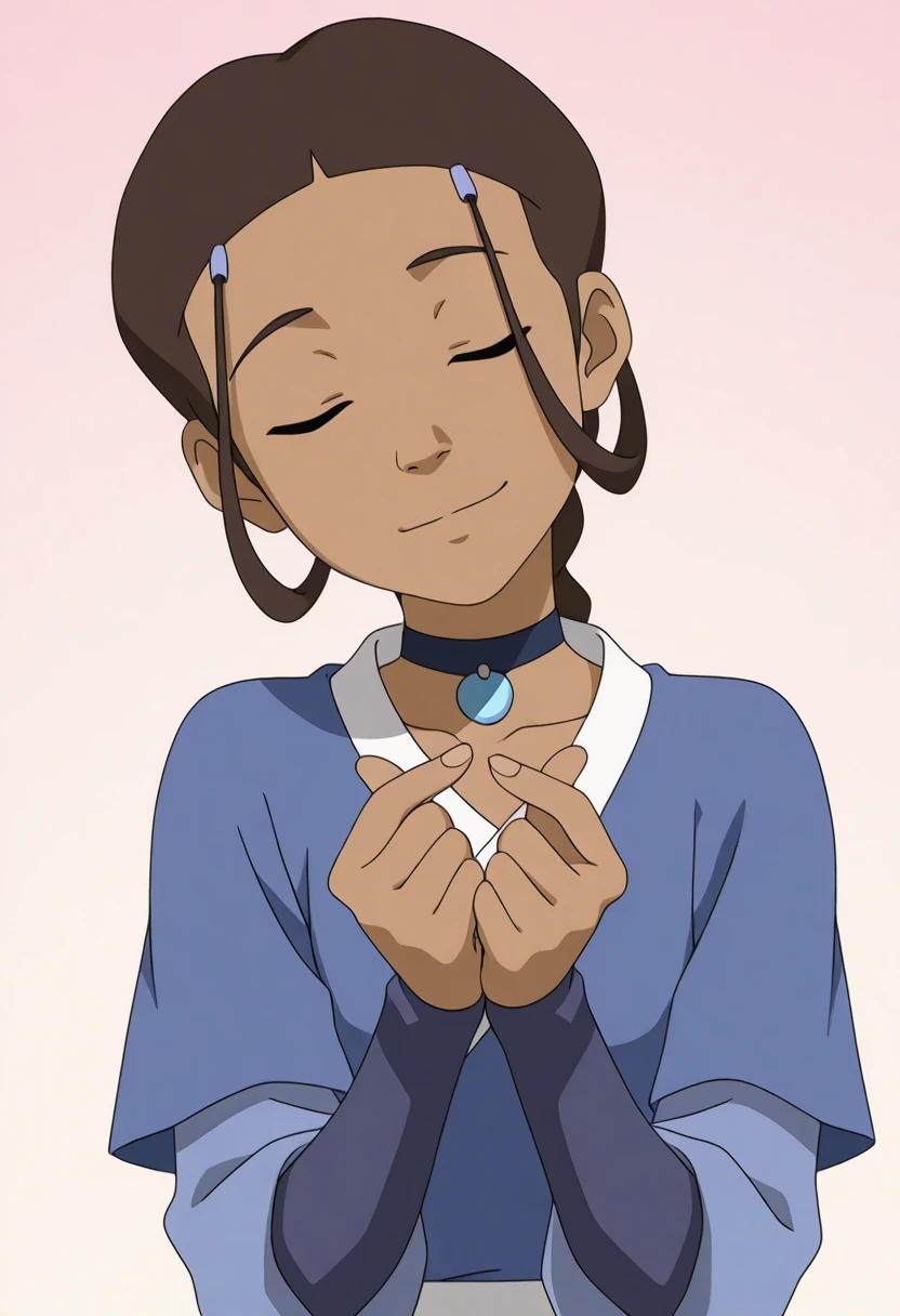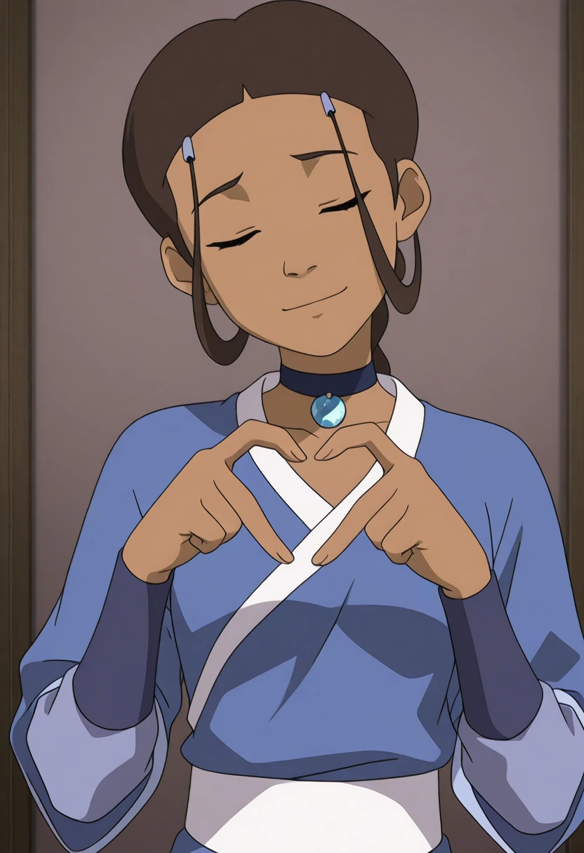 1girl, katara, brown hair, dark skin, dark-skinned female, choker, jewelry, hair ornament, braid blue robe