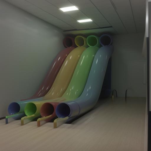 Tip: try to include symmetric in negative prompt to avoid same style. Trigger word is p00lr00m and waterslide, not poolroom.