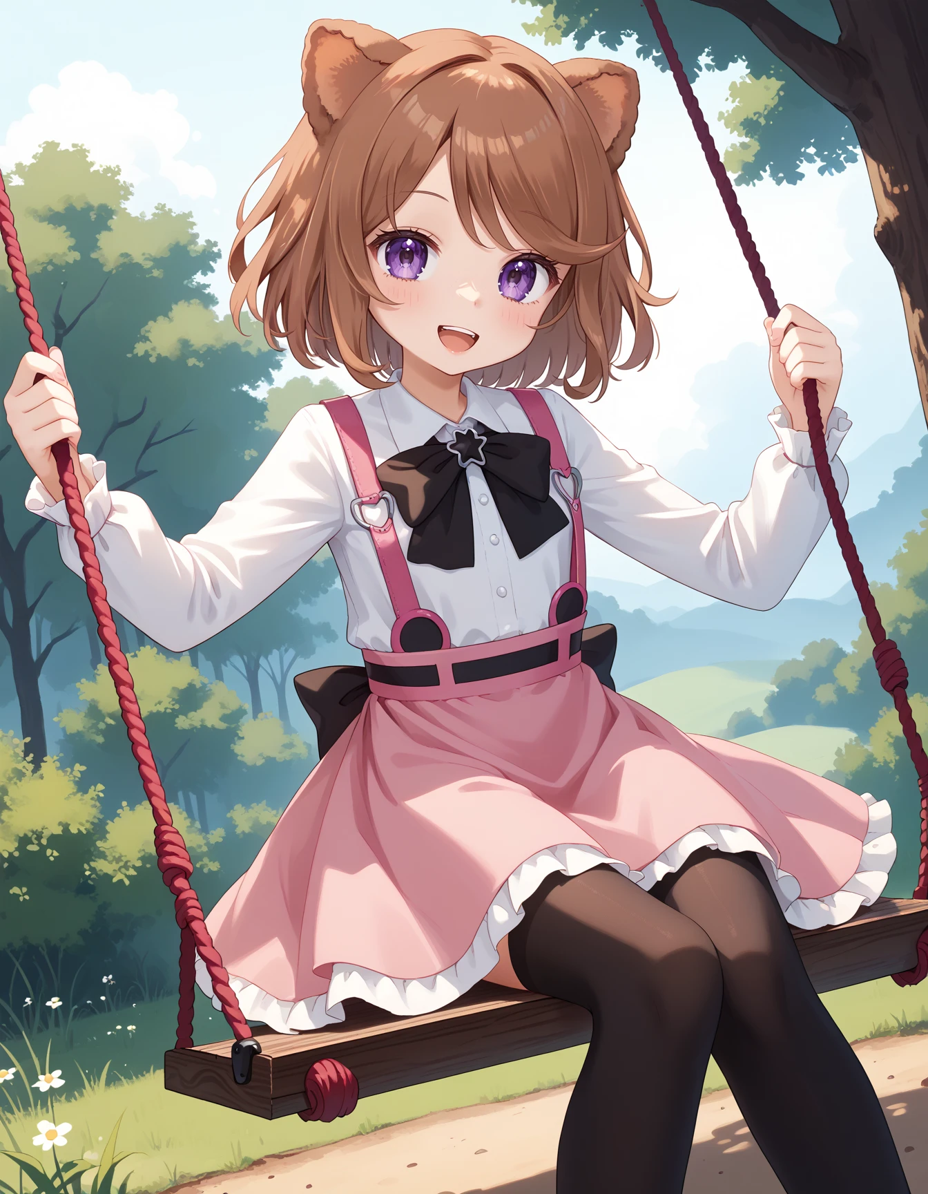 m1ru, animal ears, purple eyes, brown hair, multicolored hair,