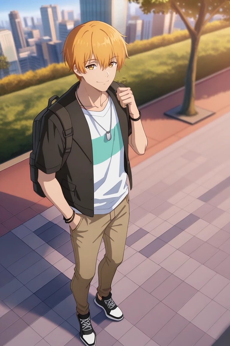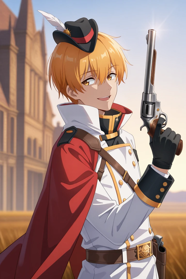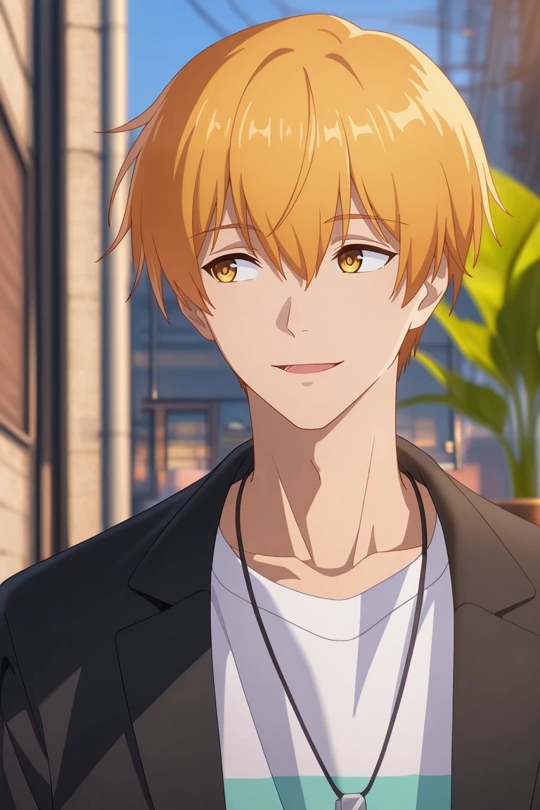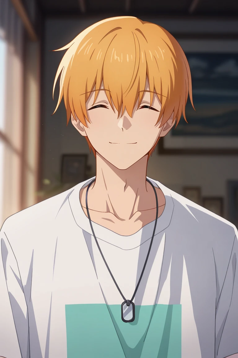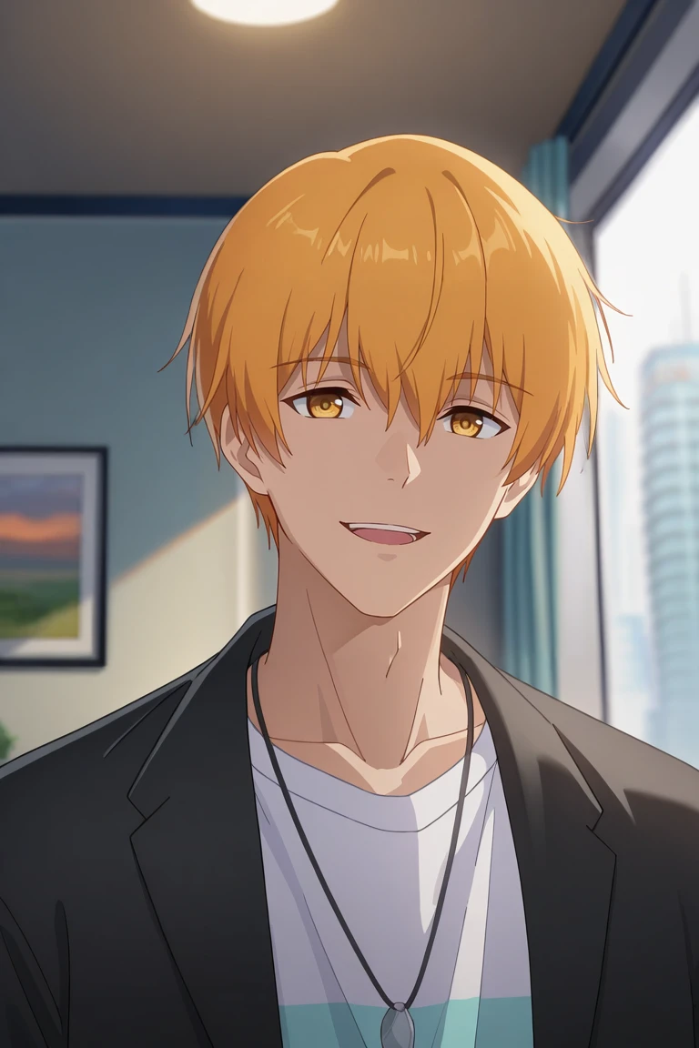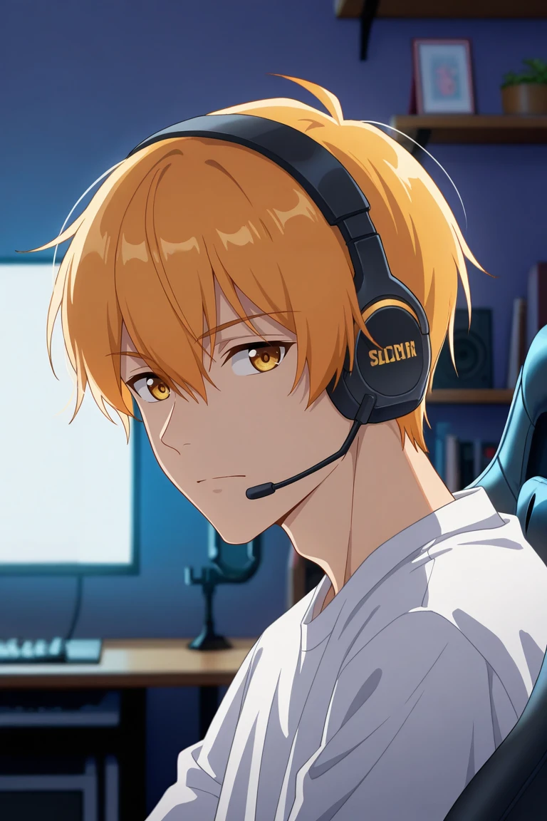 su muqiu,blonde hair,orange hair,golden eyes,short hair