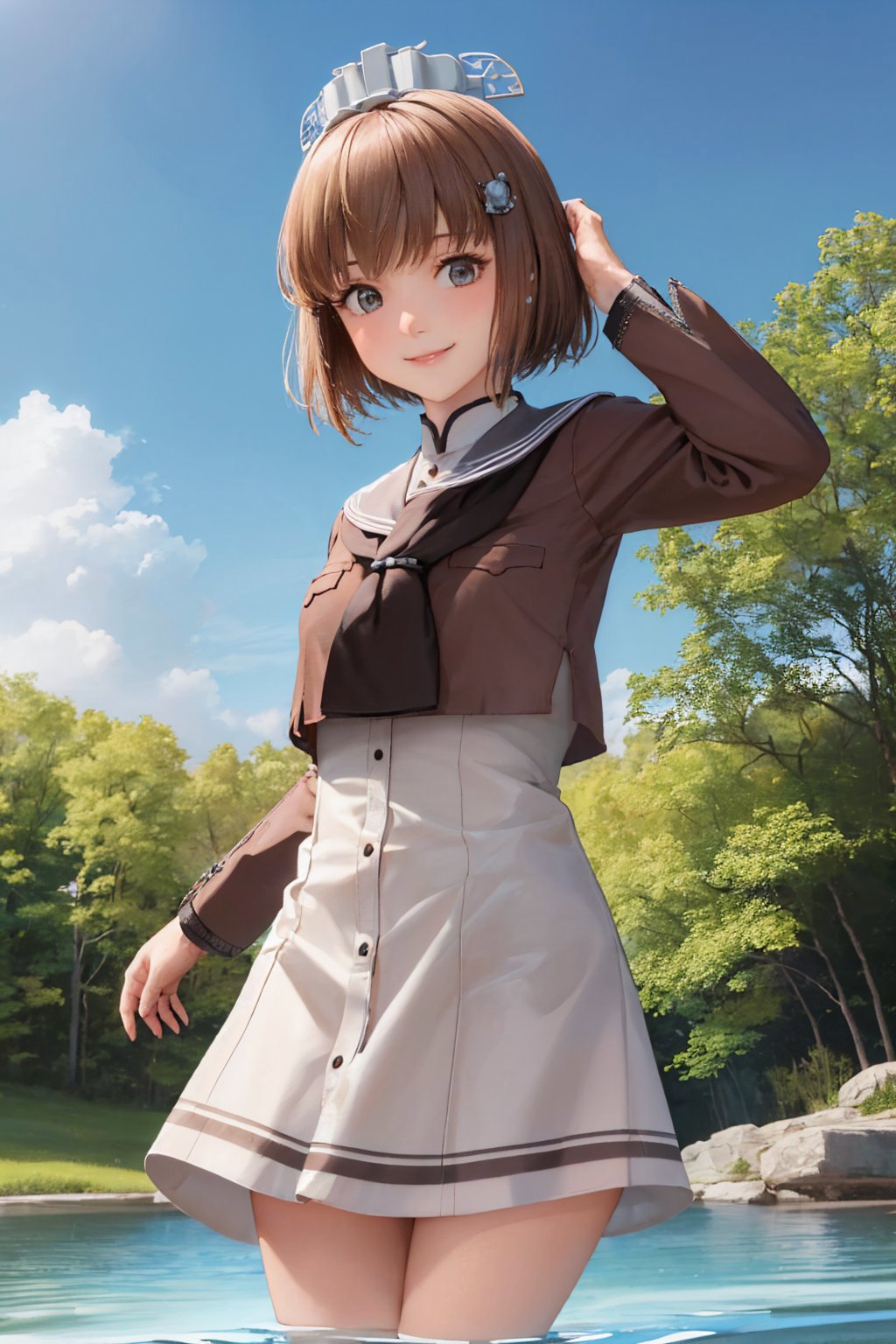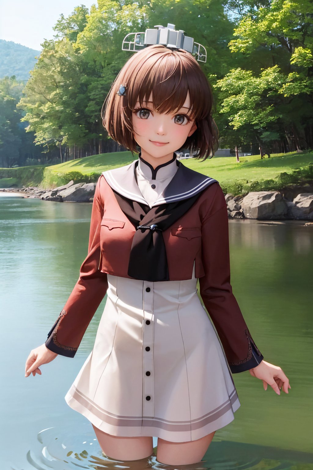 Default Outfit: headgear, sailor shirt, grey sailor collar, white dress