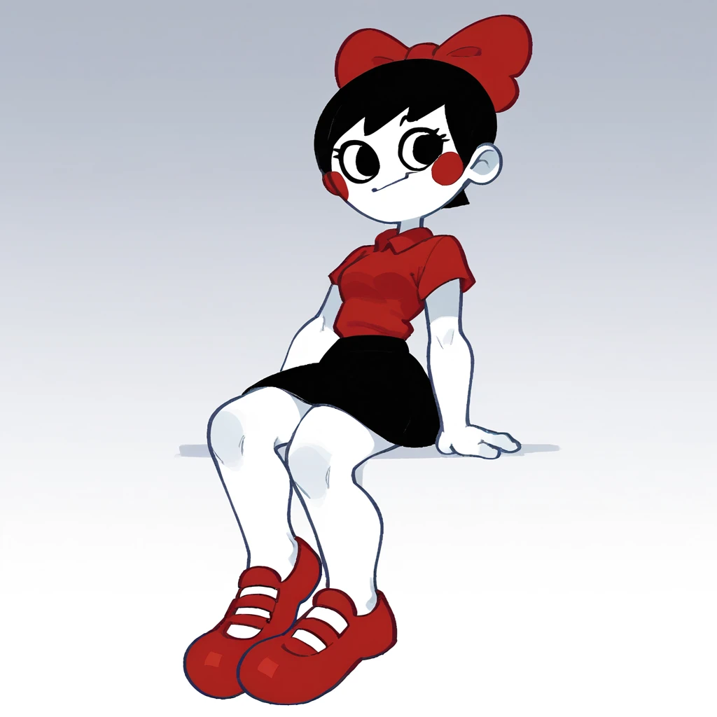 Utz, 1girl, solo, white skin, black hair, short hair, hair bow,