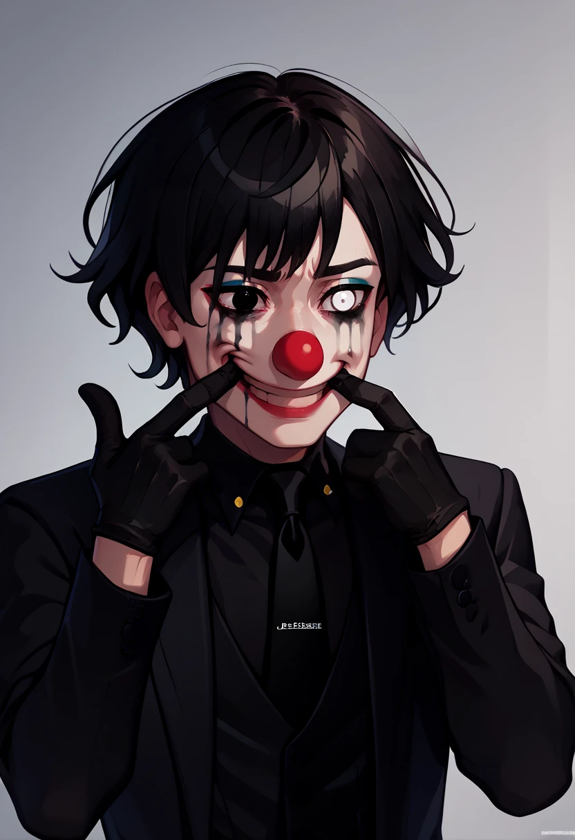 forced smile, mouth pull, fingersmile, makeup, clown nose, runny makeup