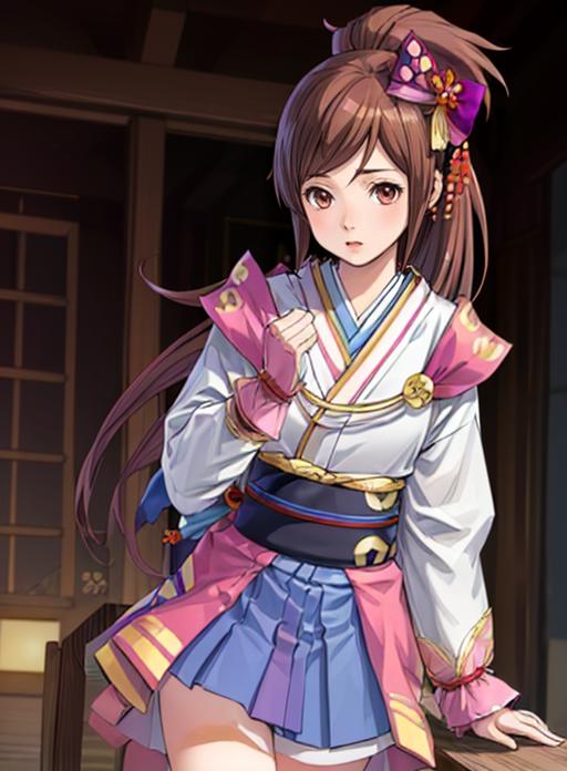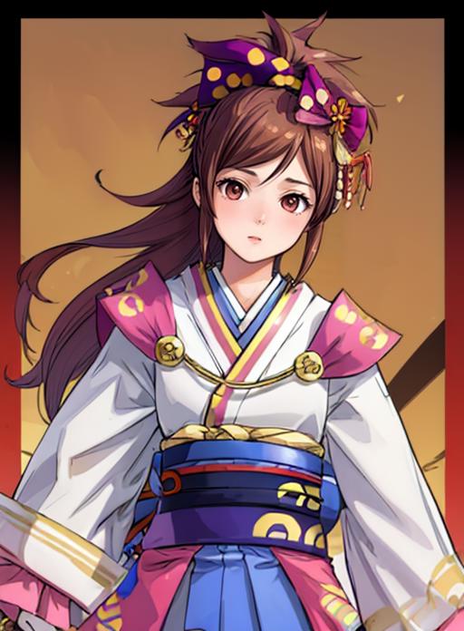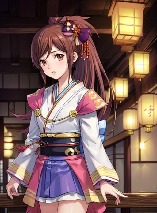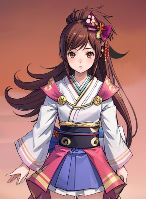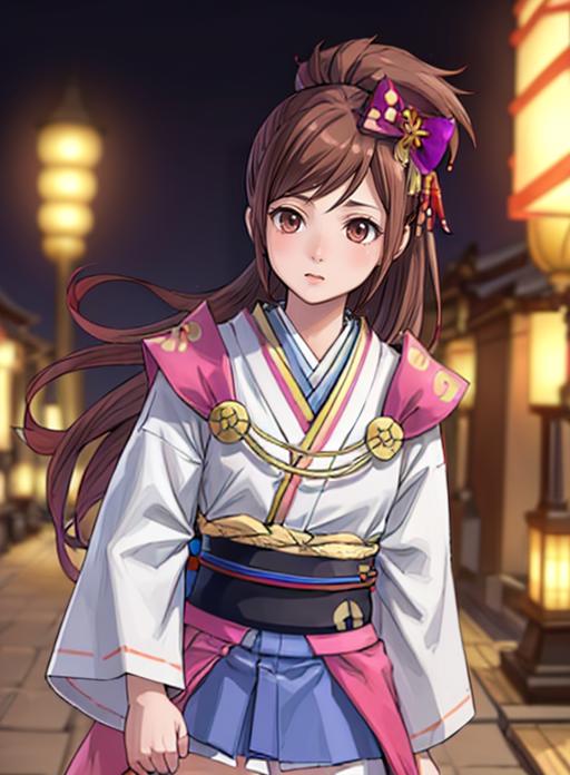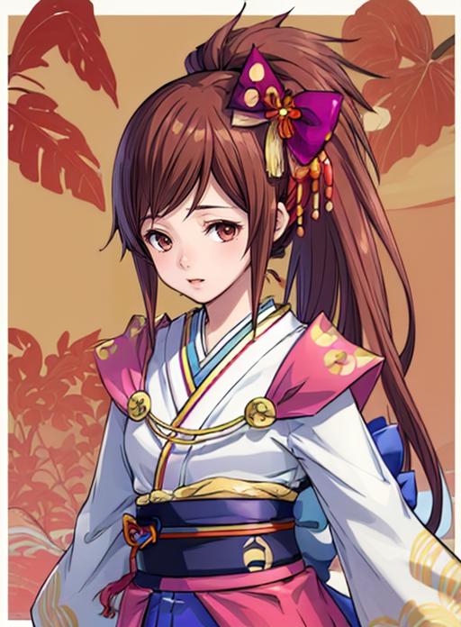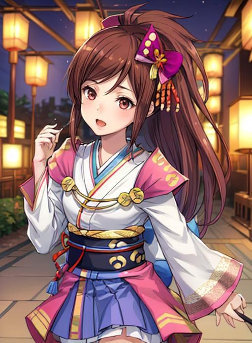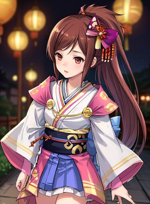 oichi, long hair, hair ornament, brown hair, ponytail, brown eyes, hair bow