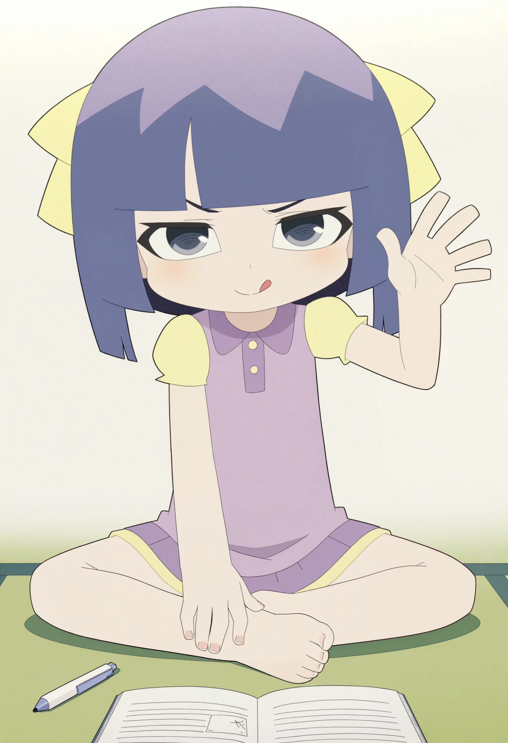 taosu,purple hairdress,grey eyes,short hair,hair bow,blunt bangs,child
