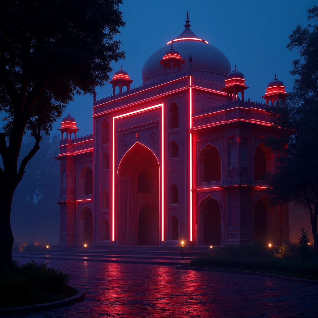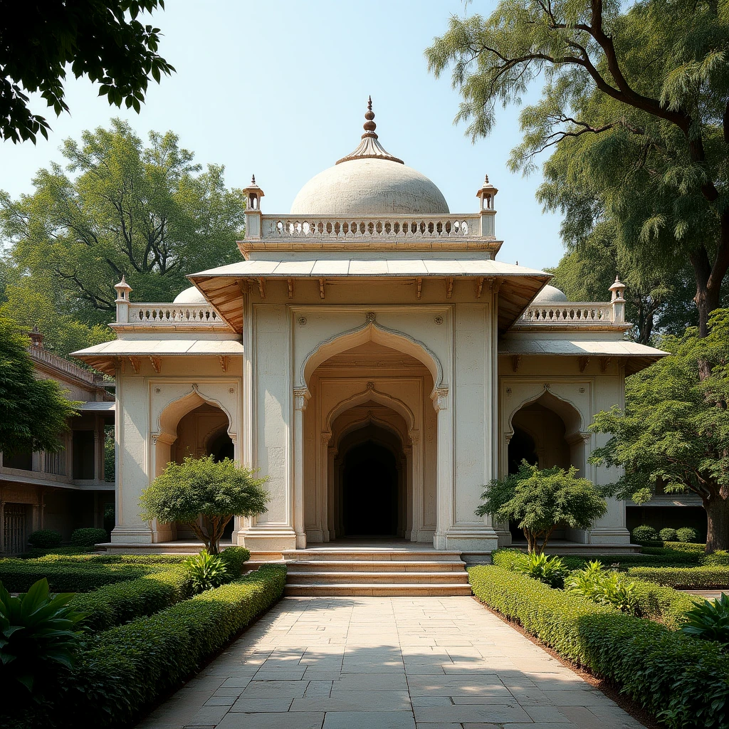 Mughal architecture is a style of Indo-Islamic architecture that flourished in the Indian subcontinent during the Mughal Empire. It is characterized by a blend of Islamic, Persian, Turkish, and Indian architectural elements, resulting in grand structures with bulbous domes, slender minarets, spacious halls, and intricate ornamentation. Key features include large arched gateways, symmetrical designs, and the use of red sandstone and white marble.