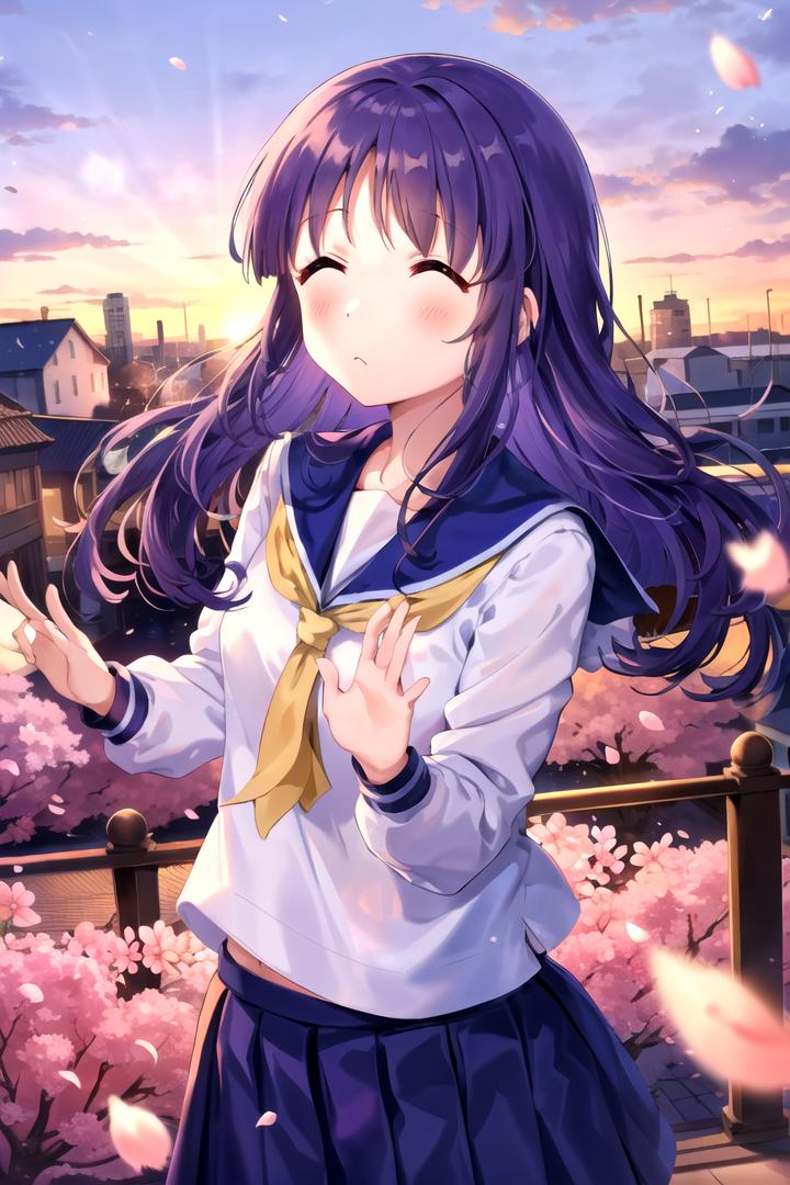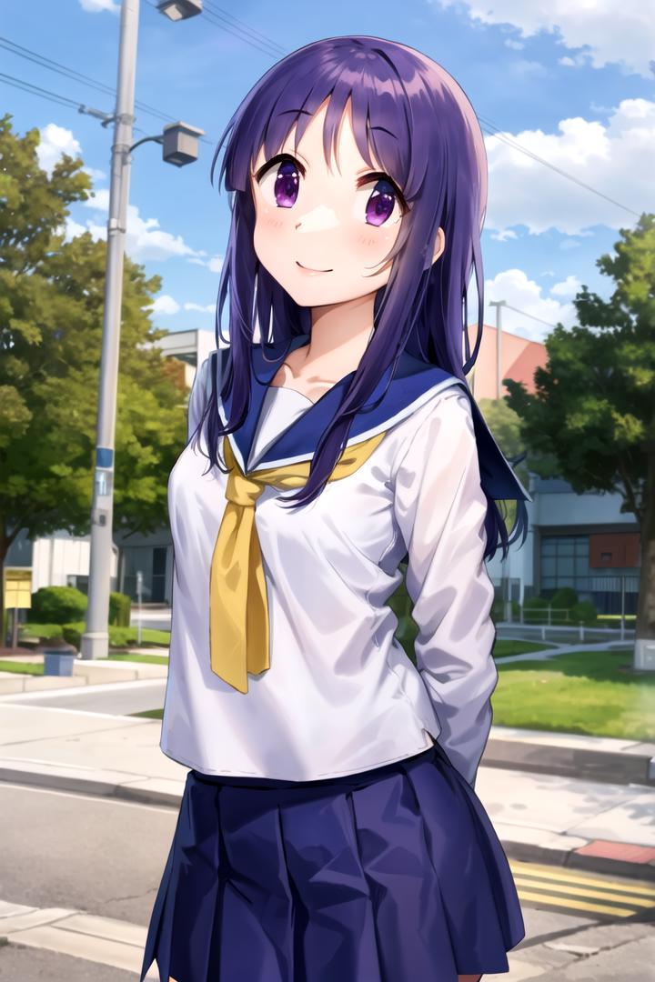 Use serafuku, sailor collar, neckerchief, skirt for her standart outfit.