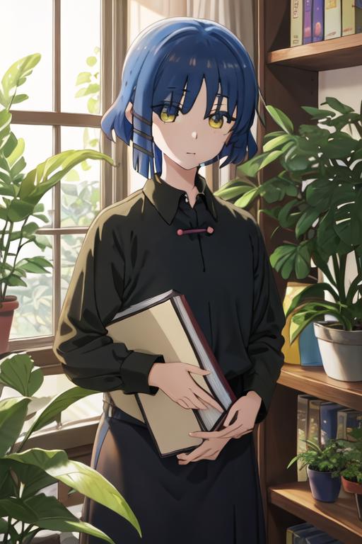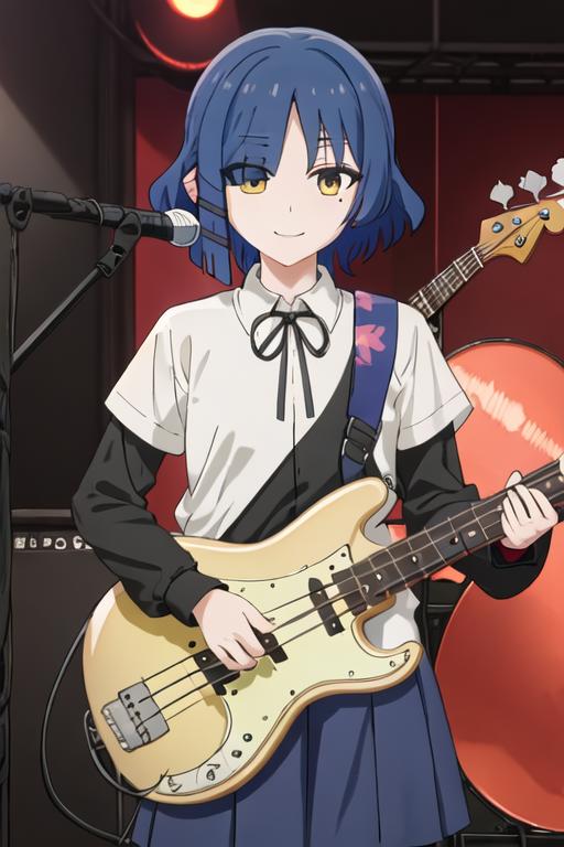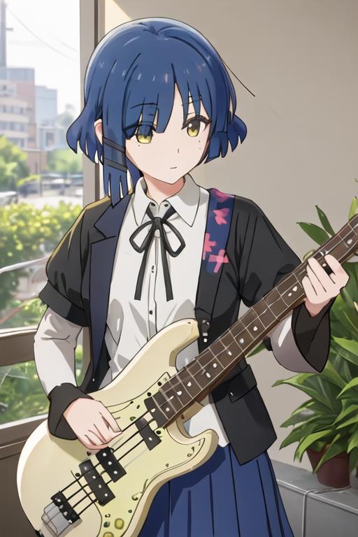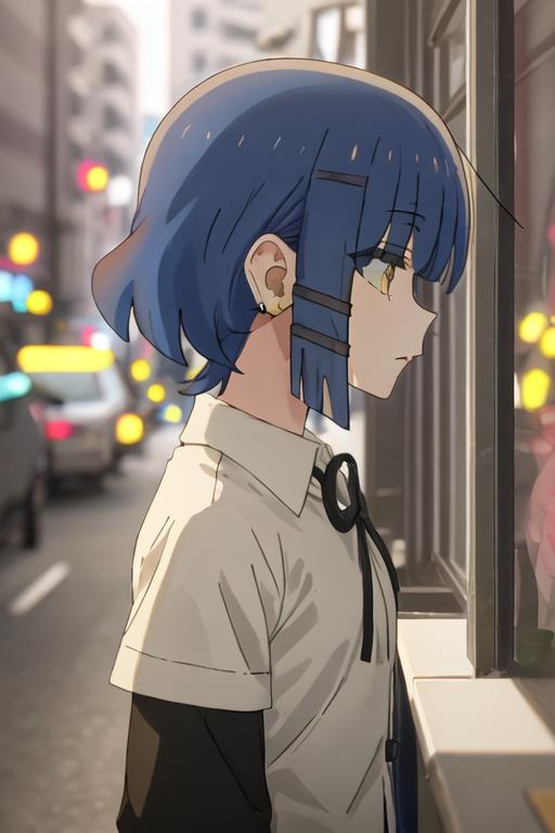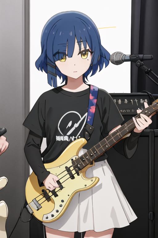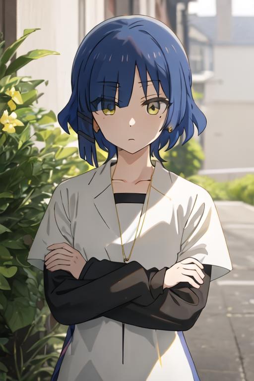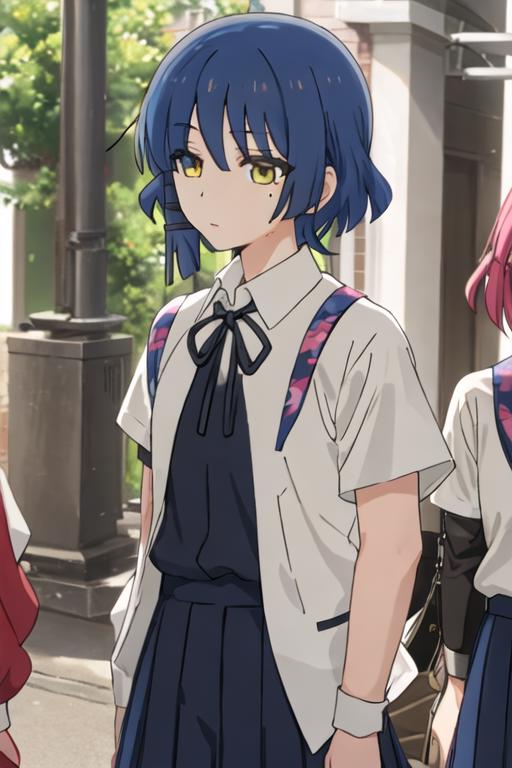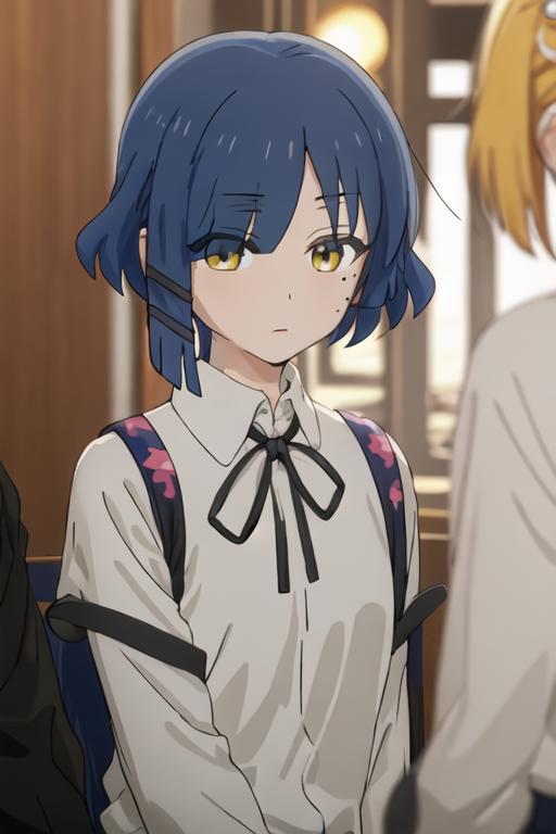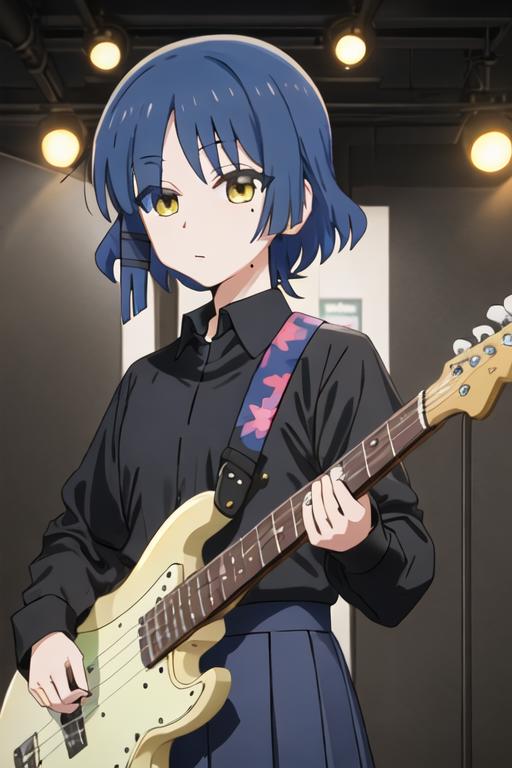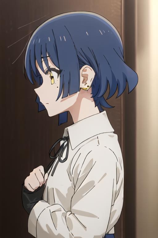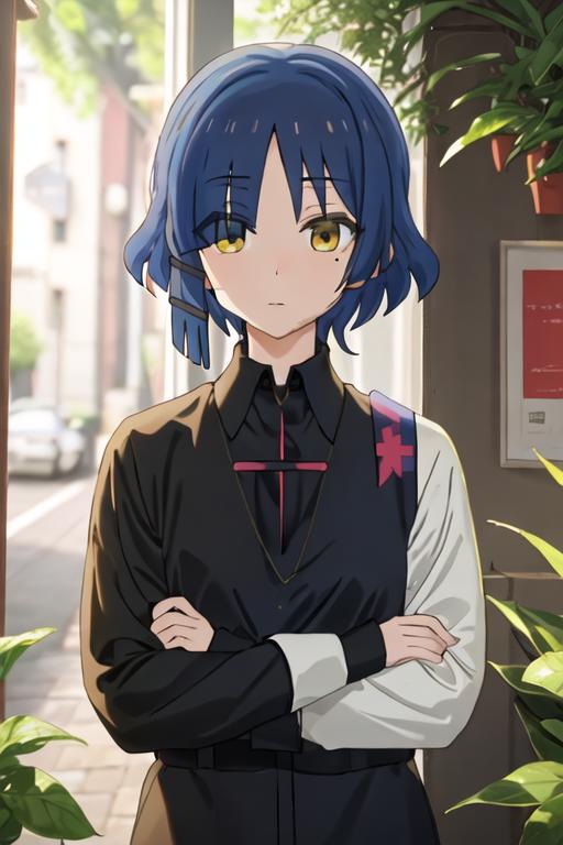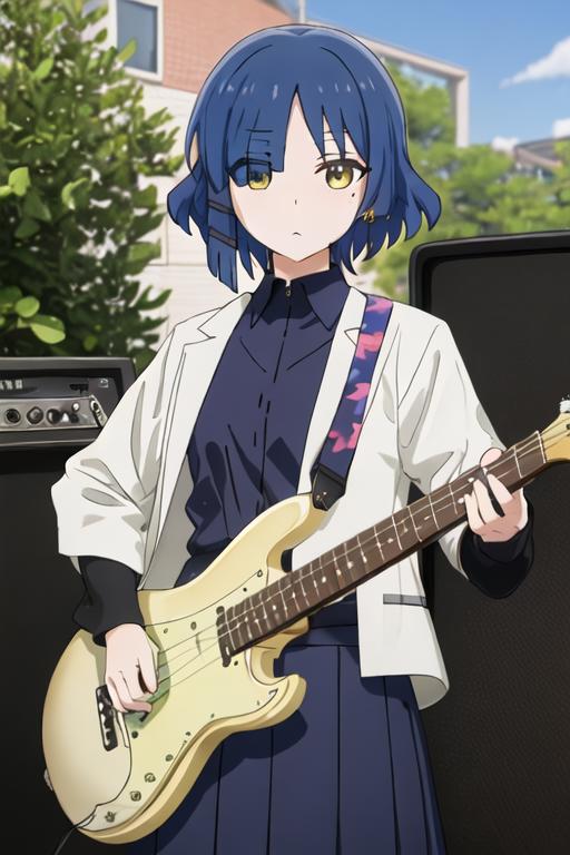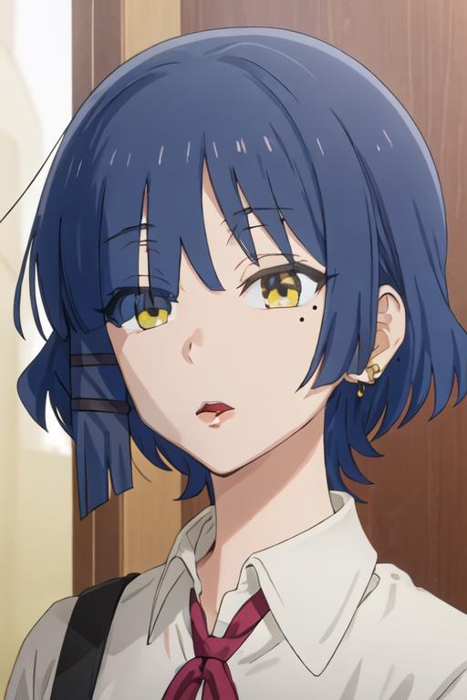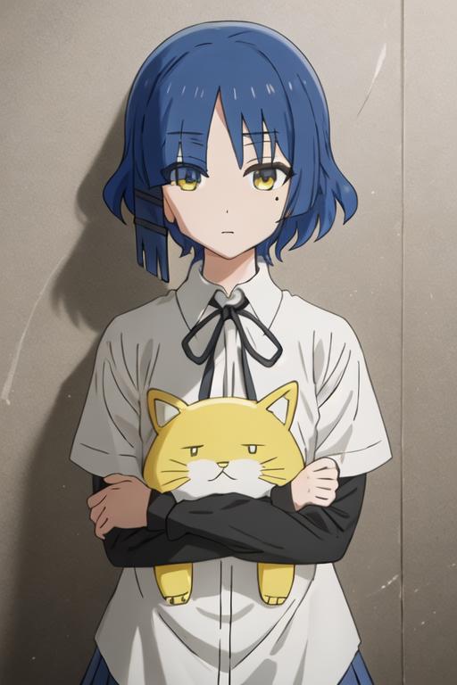 The trigger word is yamada_ryo_bocchitherock, and the recommended tags are best quality, masterpiece, highres, solo, {yamada_ryo_bocchitherock:1.15}, blue_hair, short_hair, bangs, mole_under_eye, mole, yellow_eyes, hair_ornament, closed_mouth, hairclip.