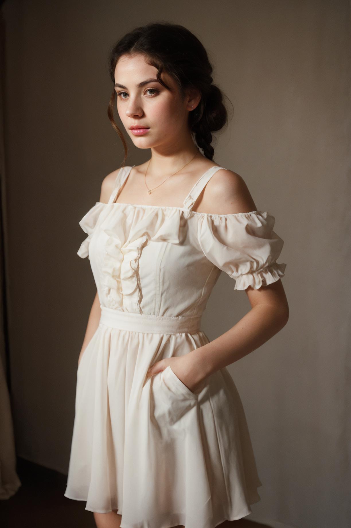 Example: futuraslava33450v5, portrait of a woman, long dress etc.