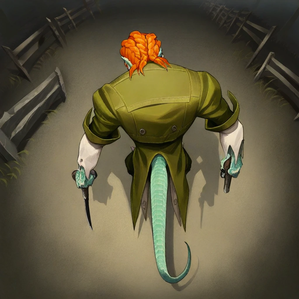 The hunter form of Luchino Diruse. Driven to inject himself with snake venom by the Dream Witch, Yidhra, Luchino's form transformed into a mix of human and lizard. He uses a kukri as a weapon.