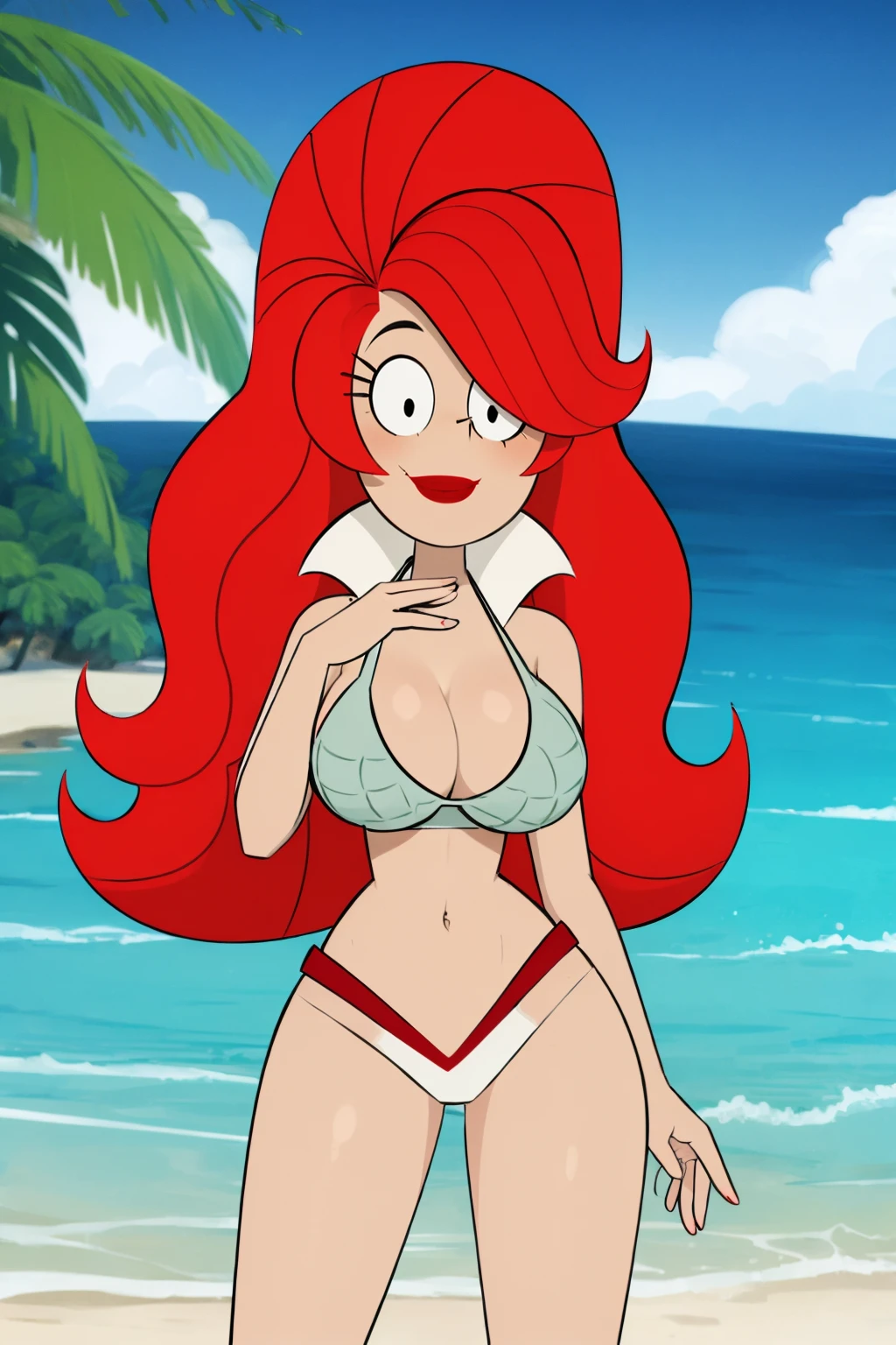 Basic prompts : 1girl, frankarella, red hair, long hair, red lips