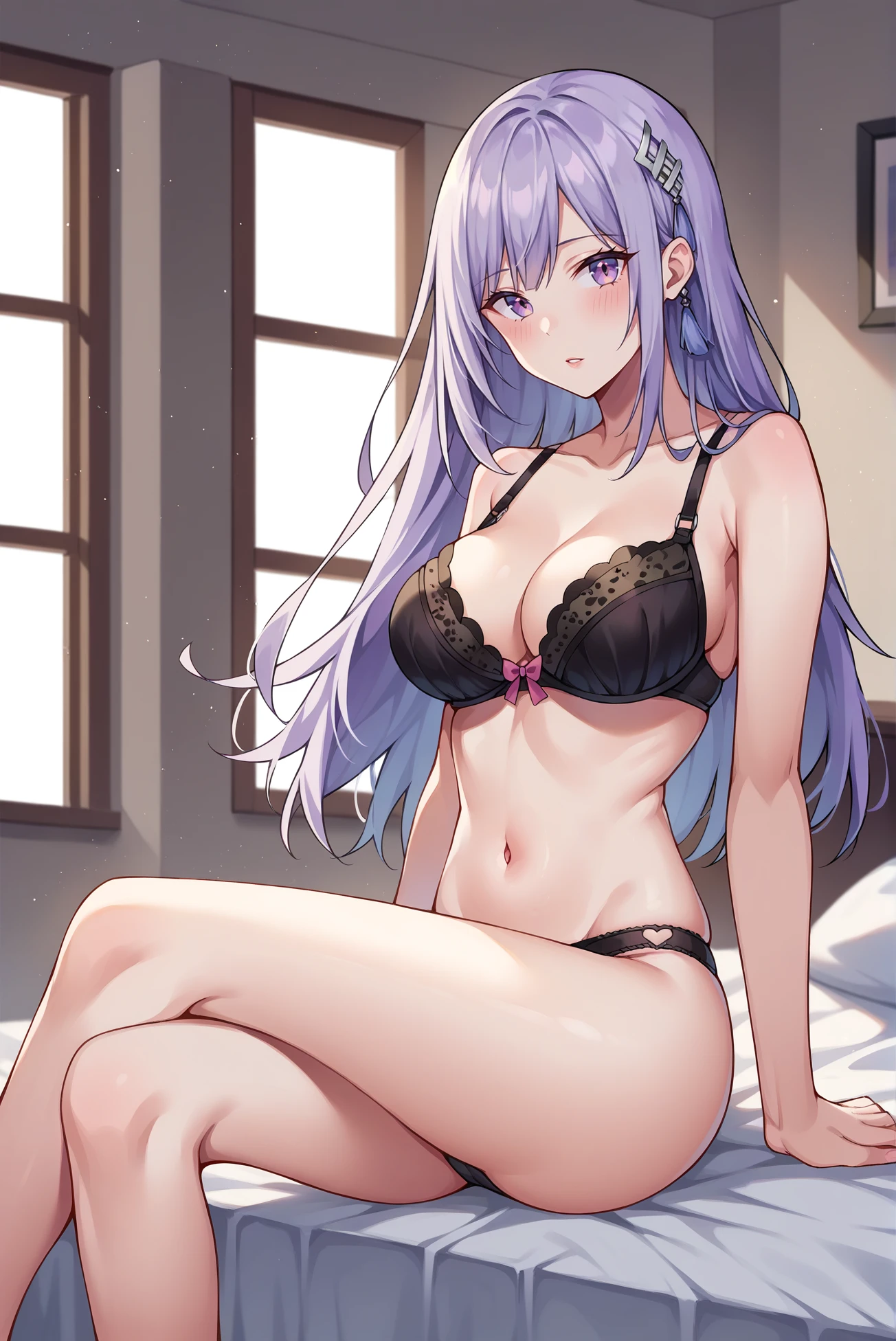 light purple hair, long hair, hair ornament