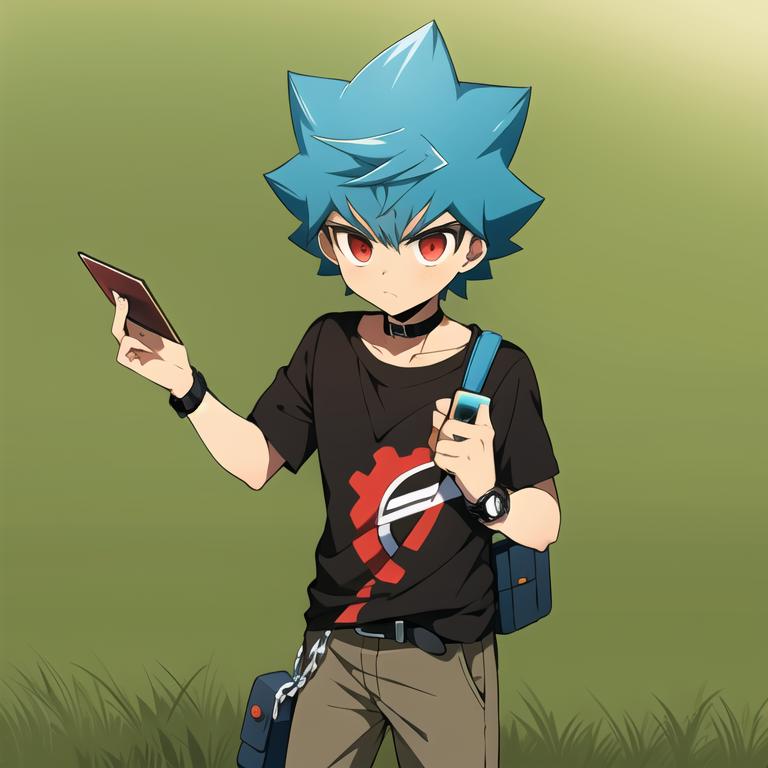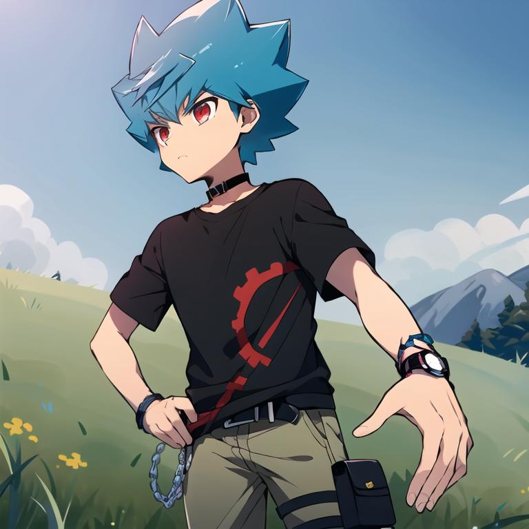 shirt, shoes, belt, pants, bracelet, chain, pouch, black shirt, short sleeves, watch
