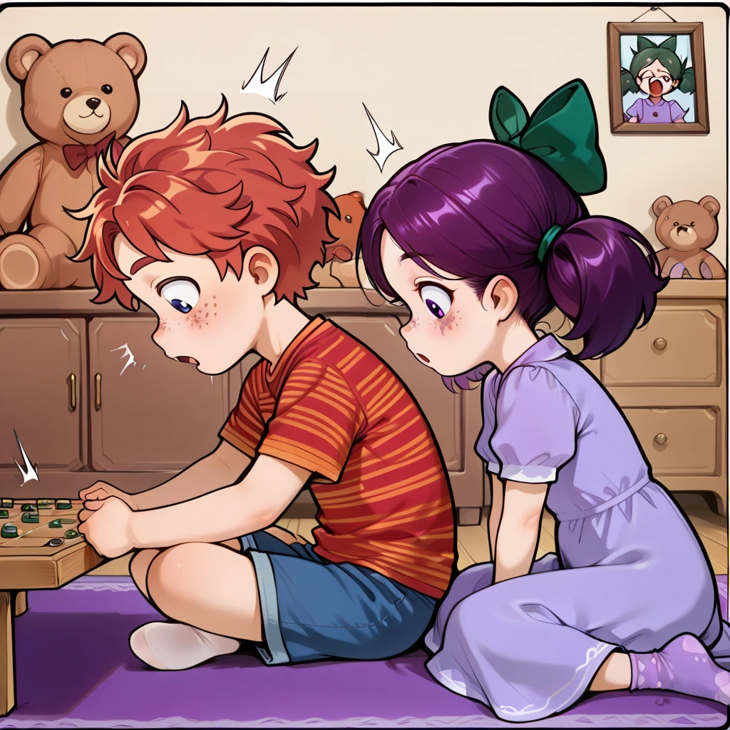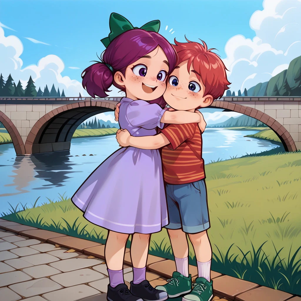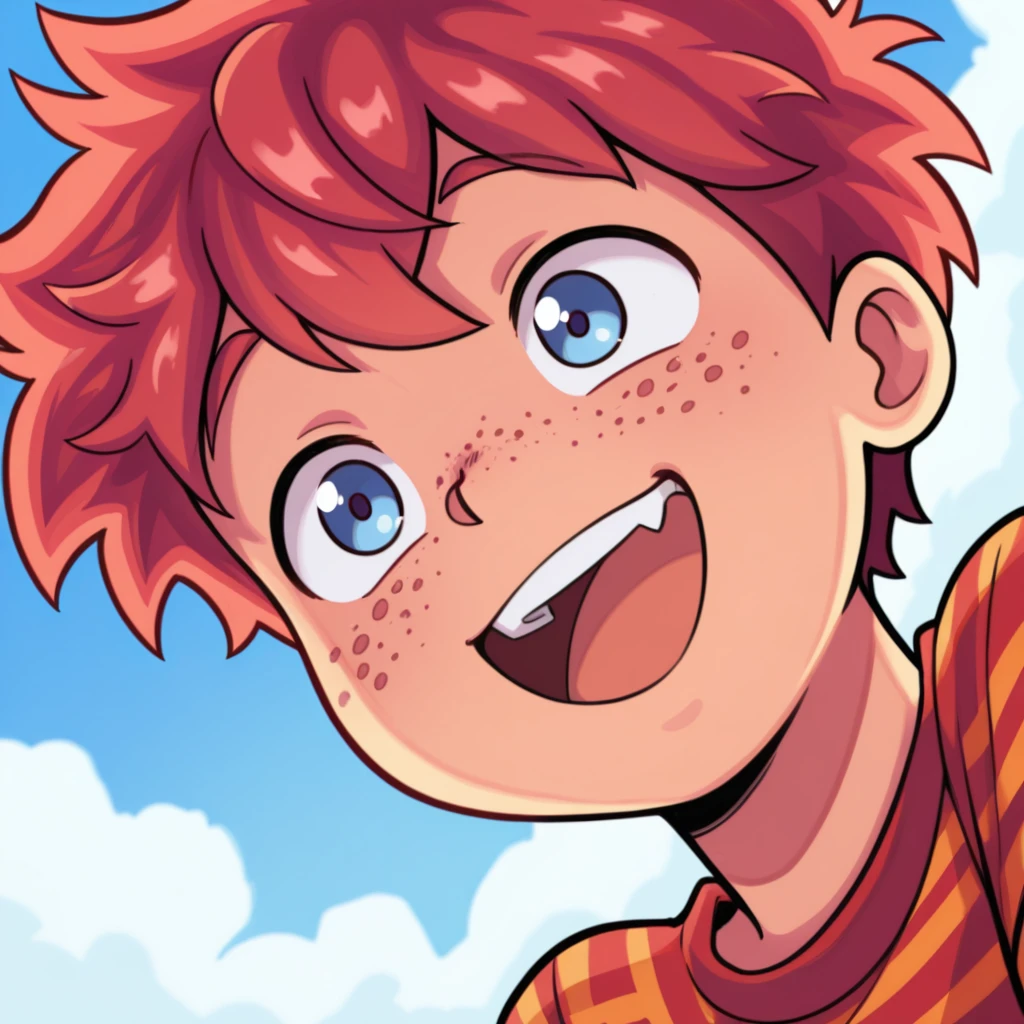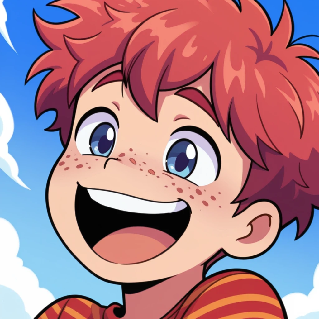 red and yellow t-shirt,striped t-shirt,blue shorts,green sneakers