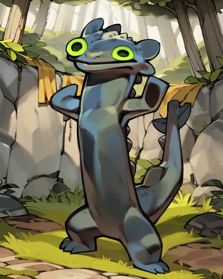 Capable of both Toothless and other species in testing, with semi-stable results. It's not perfect, but great for silly gens. When generating, use a lower (~0.8) weight on the species tag for a derpier face. Works a little better with "three-quarter view" and "side view" tags.