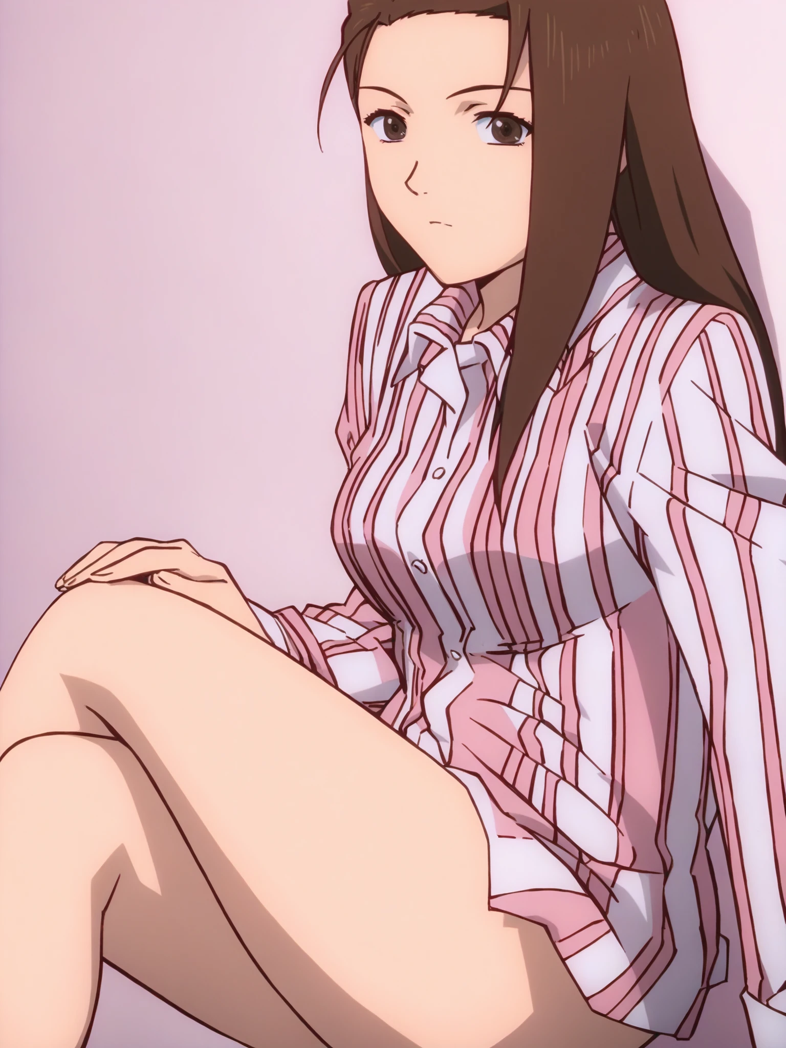 iwakura_mika_\(home5\), vertical-striped shirt, barefoot