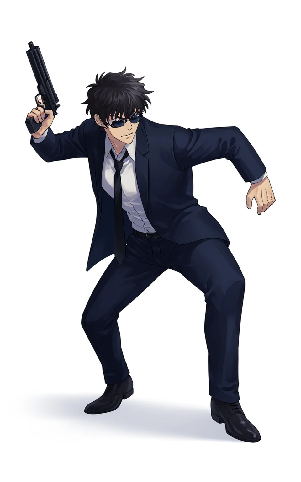 formal, necktie, suit, black necktie, pants, black sunglasses,