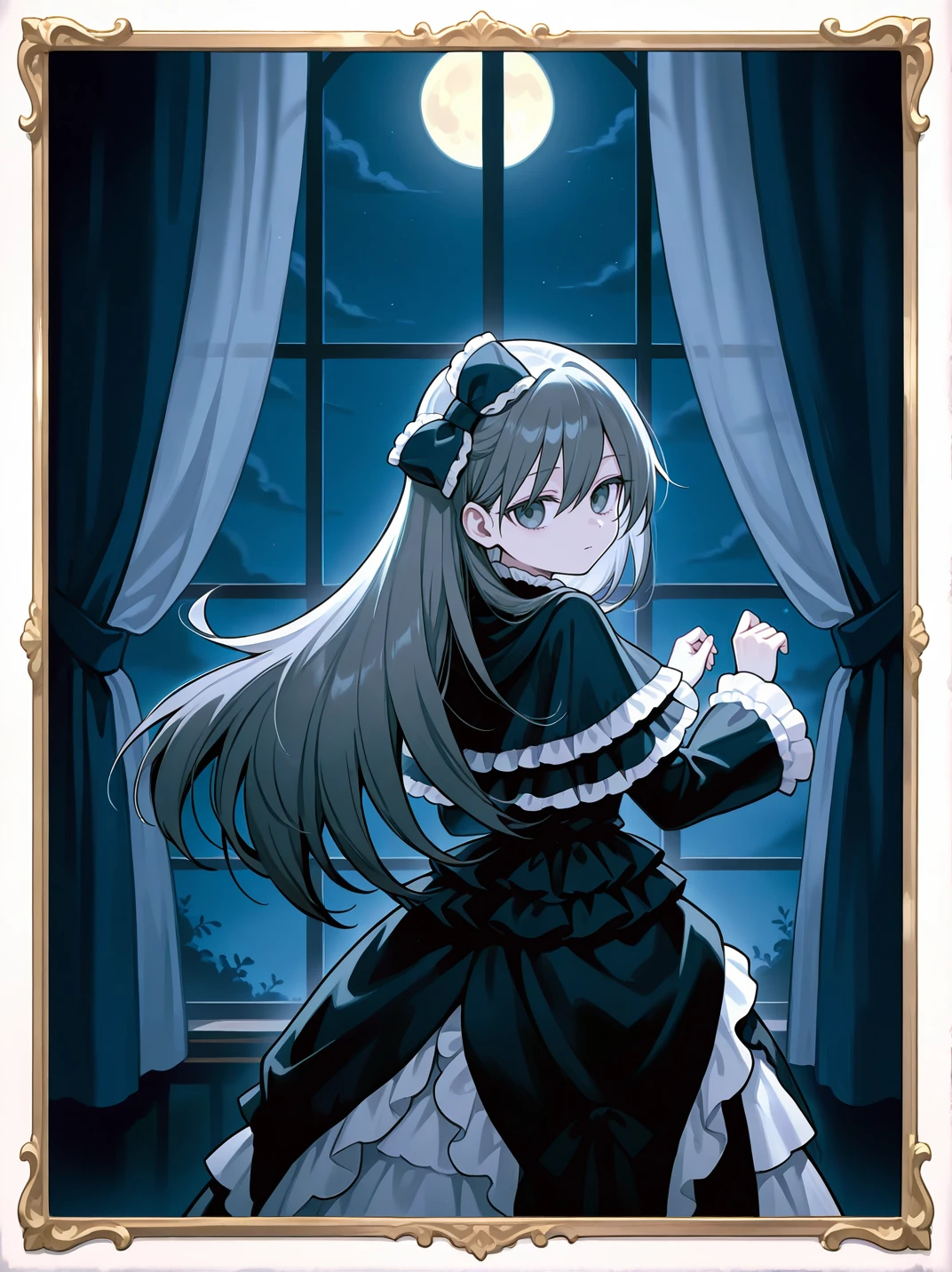 Tags (character2): ghost belle & haunted mansion,frilled dress,frilled capelet,mary janes,dark aura,