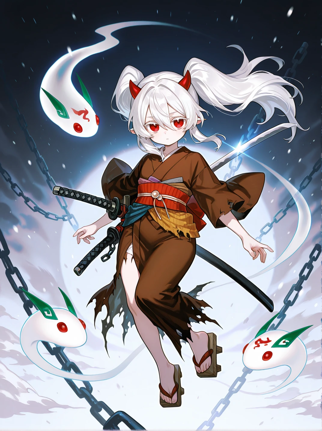 Tags (character1): ghost ogre & snow rabbit,brown kimono,