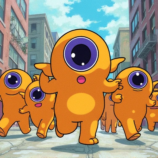 humanoid one-eyed character called wink, with purple eye and yellow skin color