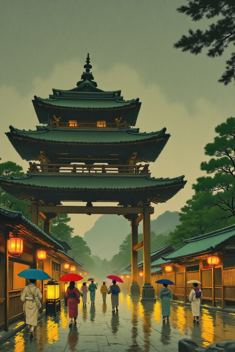 This model captures the elegant, tranquil, and deeply atmospheric style of Shiro Kasamatsu, focusing on traditional Japanese scenery and architectural serenity.
