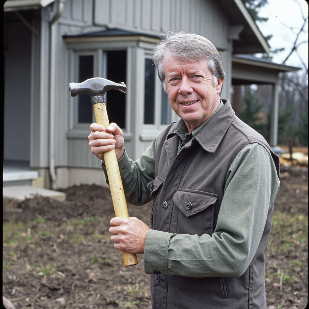 This LoRa model should allow one to generate images with the likeness of the late US president Jimmy Carter who reached the astonishing age of 100 and was known for his peanut farming and helping to build houses even late into his age. The likeness depicted with this model is of him during his presidency.