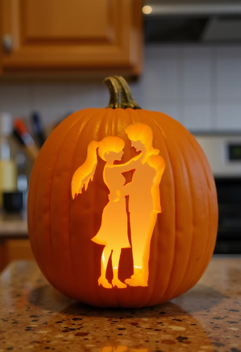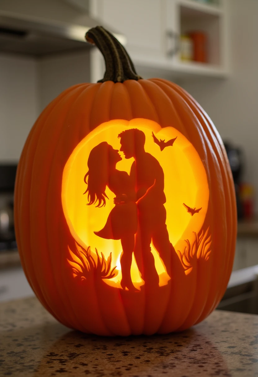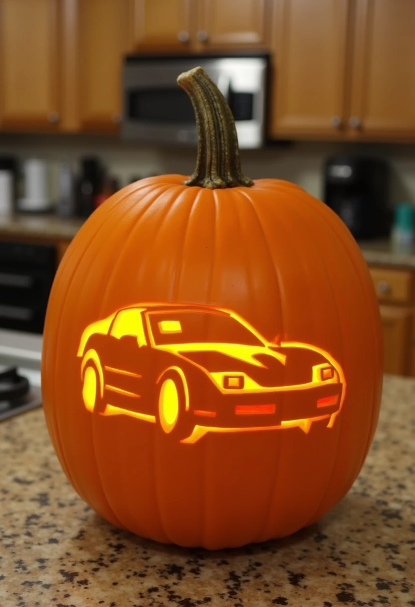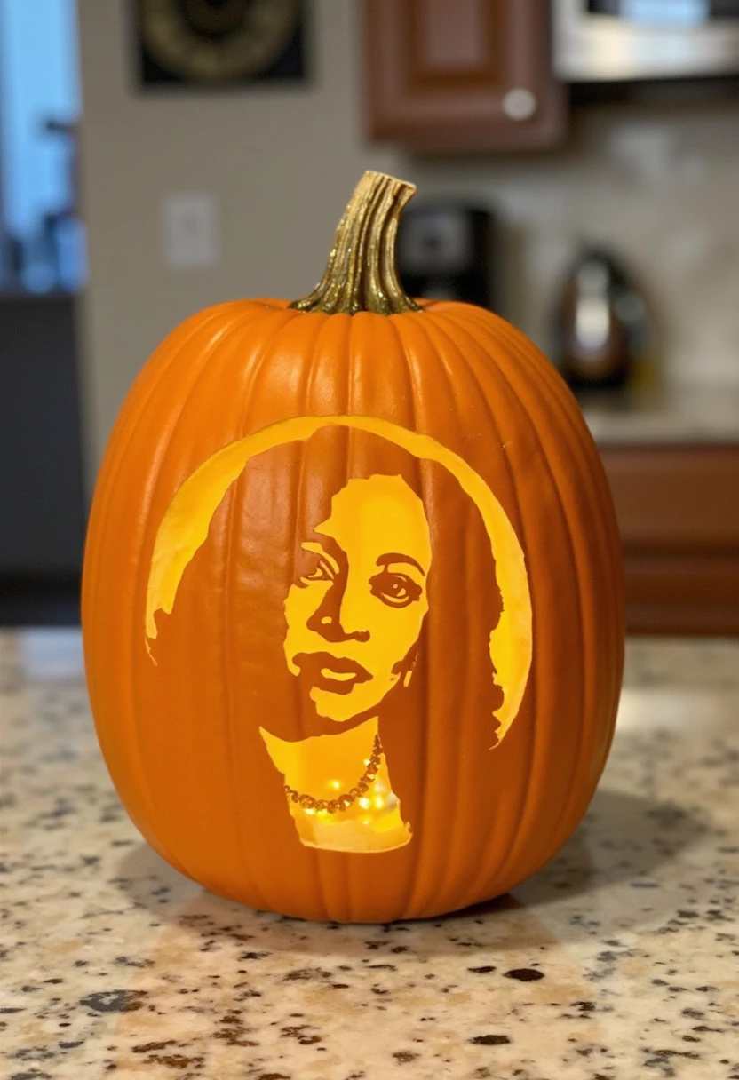 This is a photo of a carved pumpkin LOCATION. The carving is a DESCRIBE