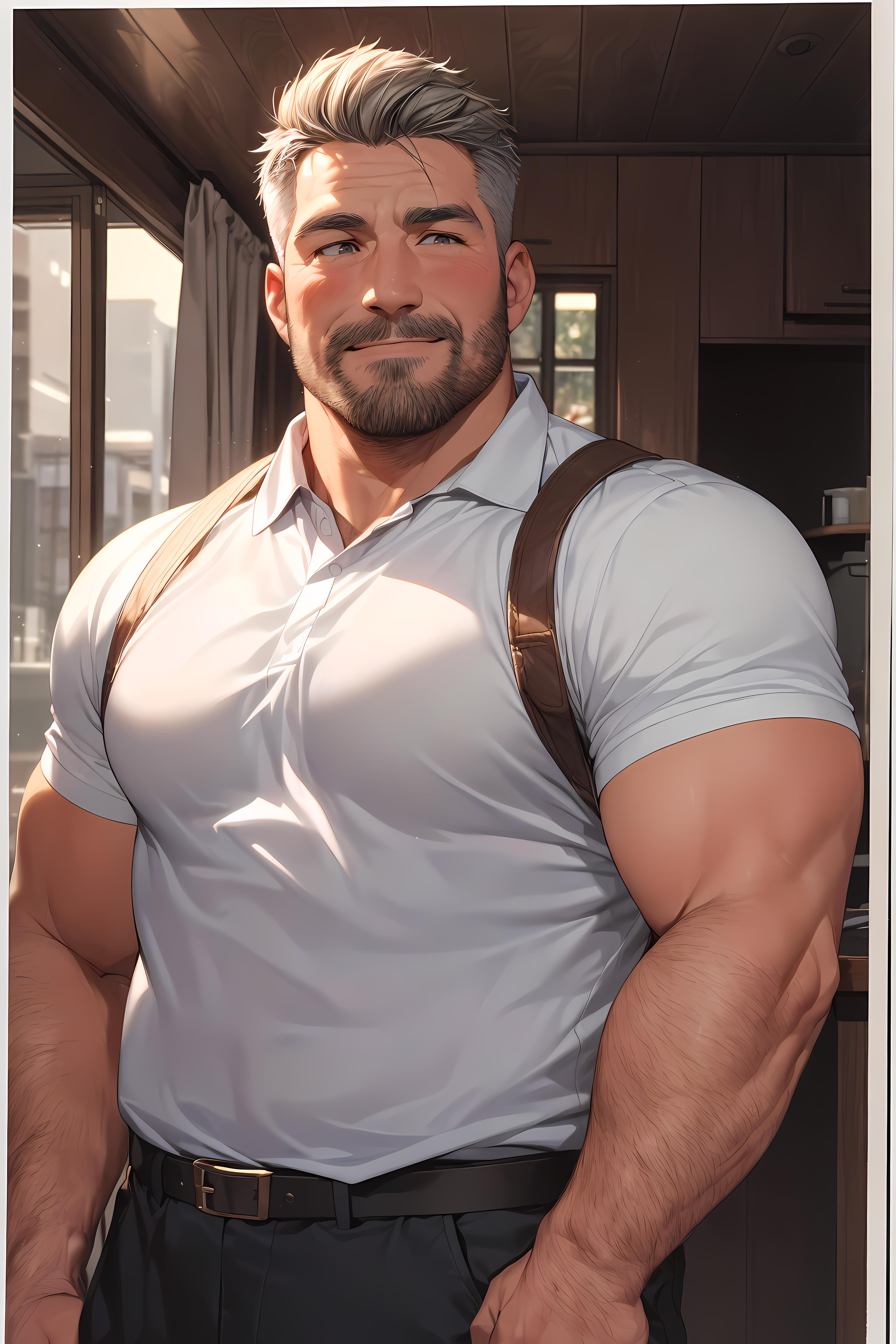 asian man, asian boy, fat, sideburns, mustache, short hair, buzz cut