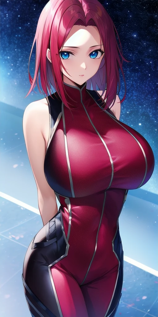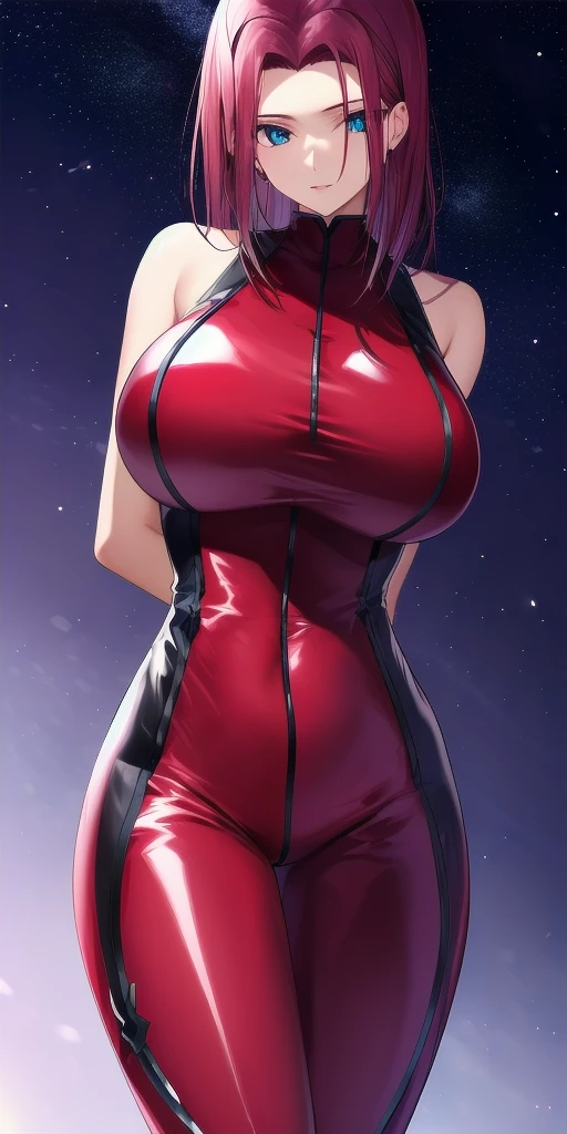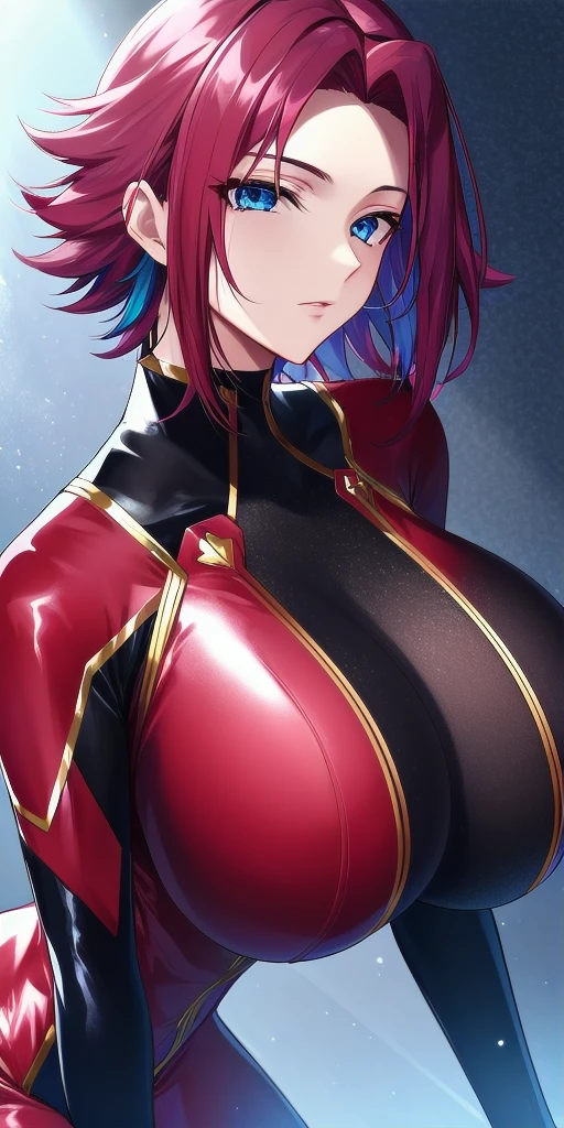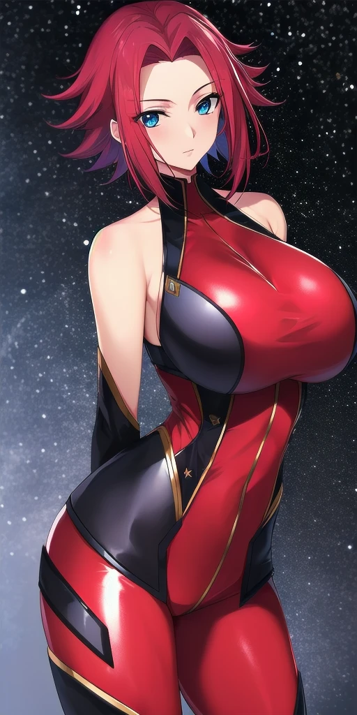 red_bodysuit_grey_bodysuit_long_sleeves_shoulder_pads: Her og pilot suit.