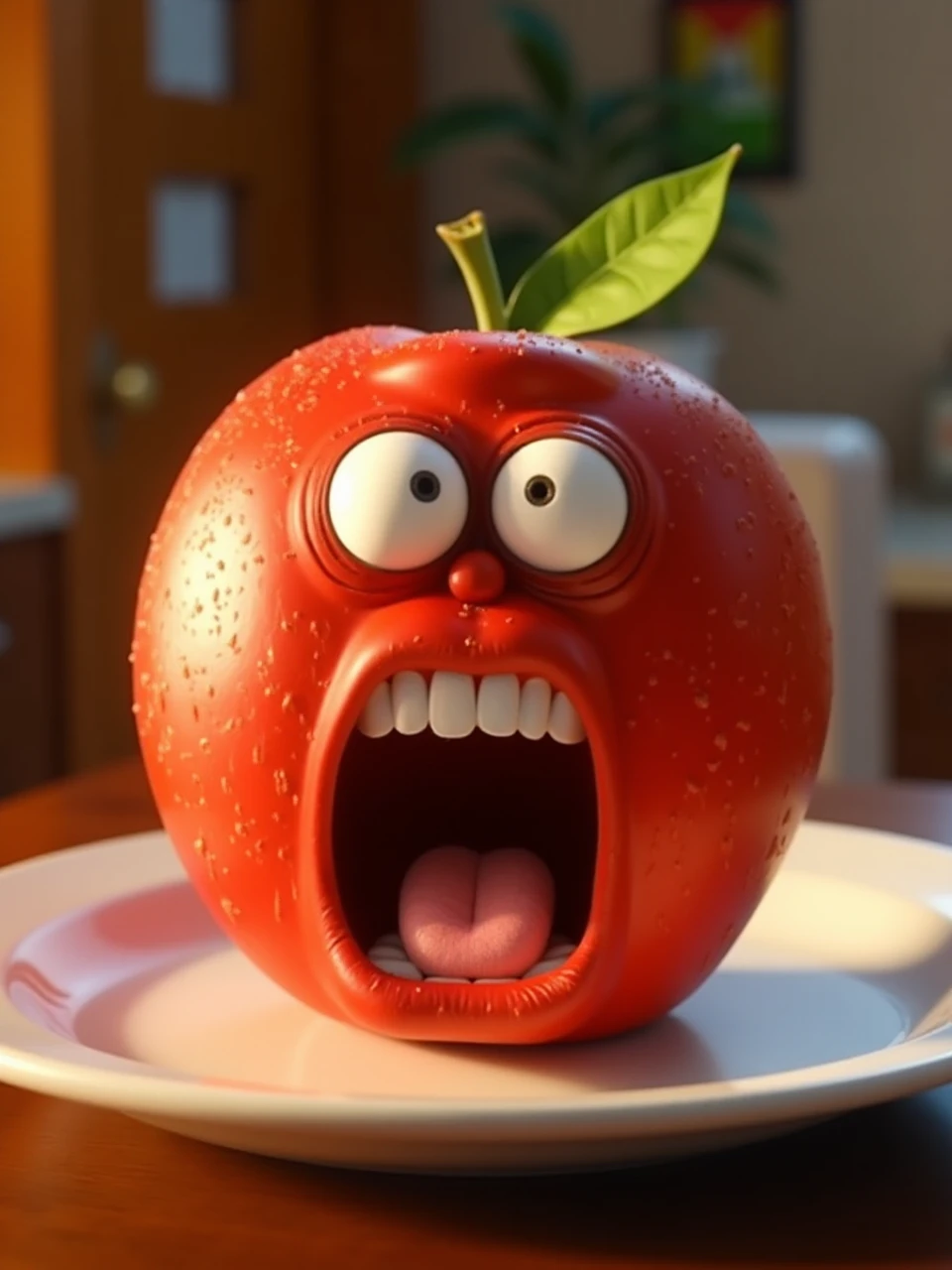 Surprise Apples (ビックリアップル) are a type of apparently sentient apples with humanoid faces that become tastier the more surprised they are. They are also called "Human Face Apples" because of the face on the fruit.