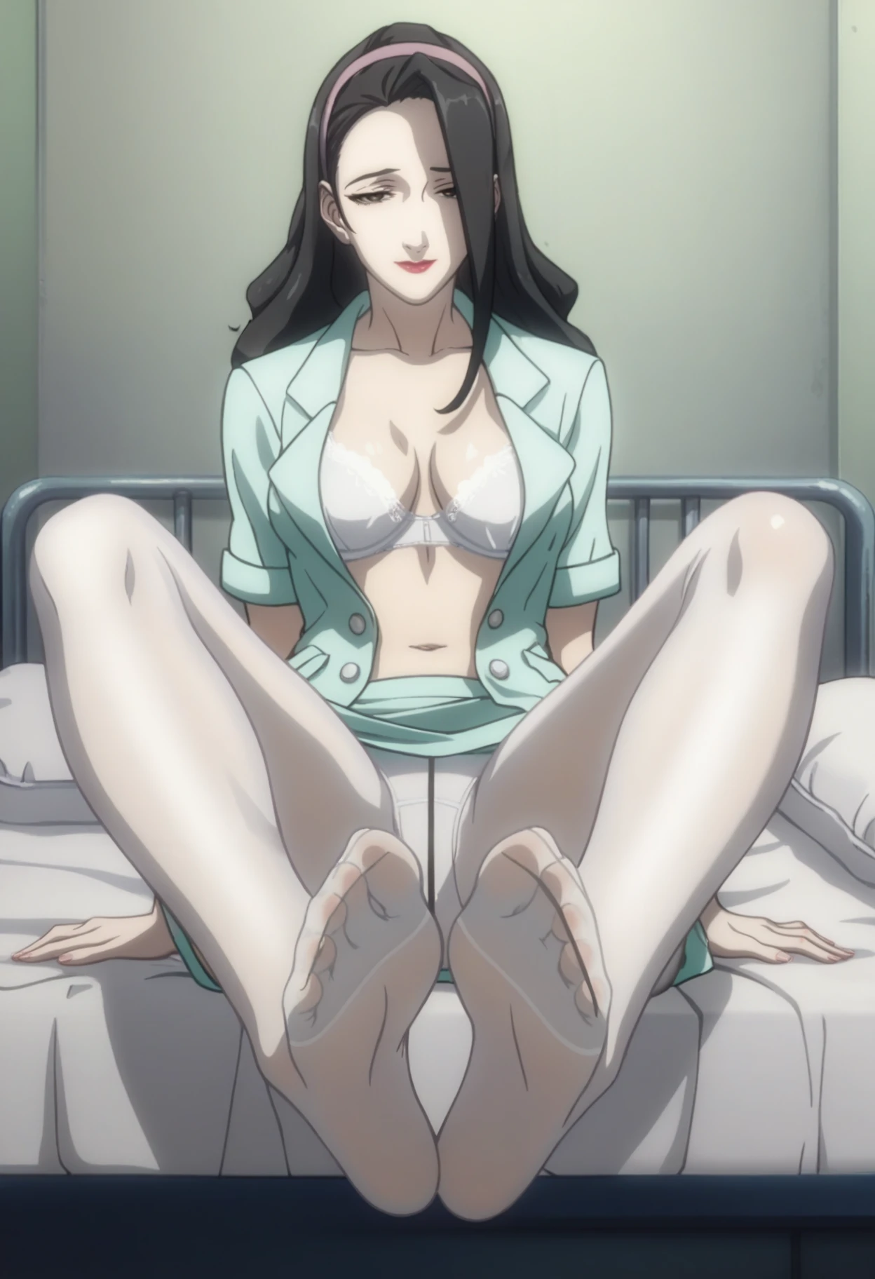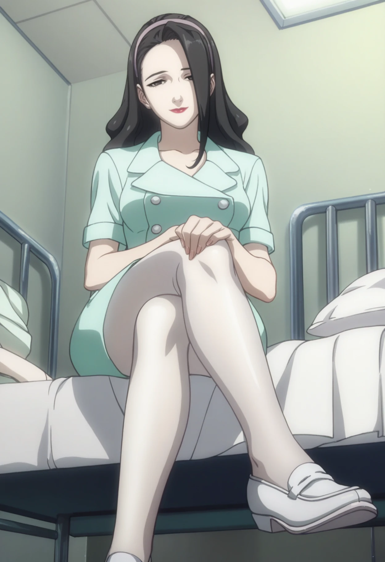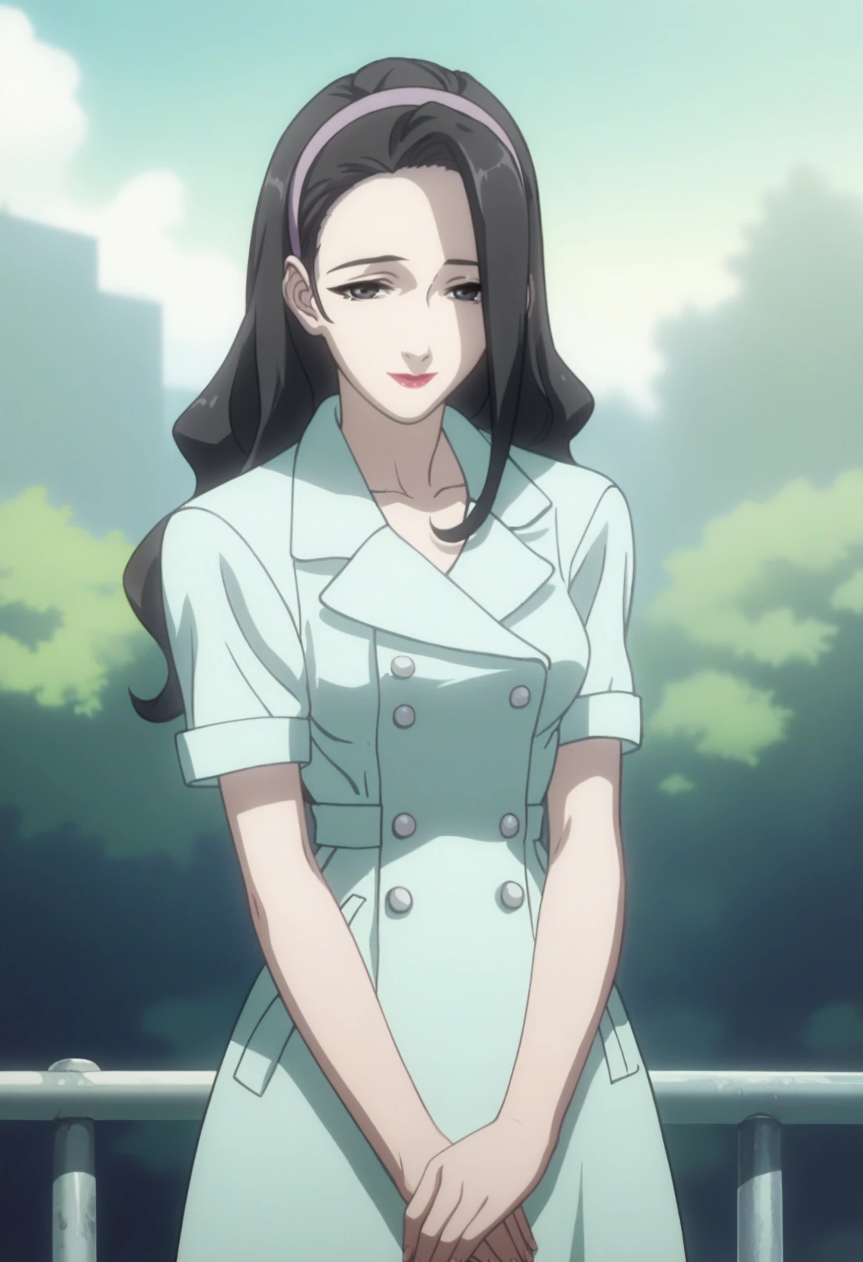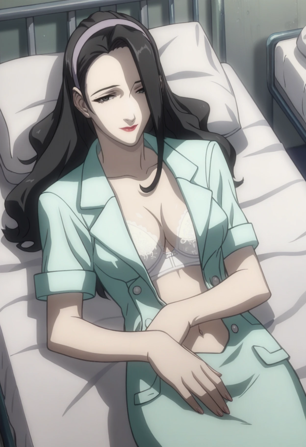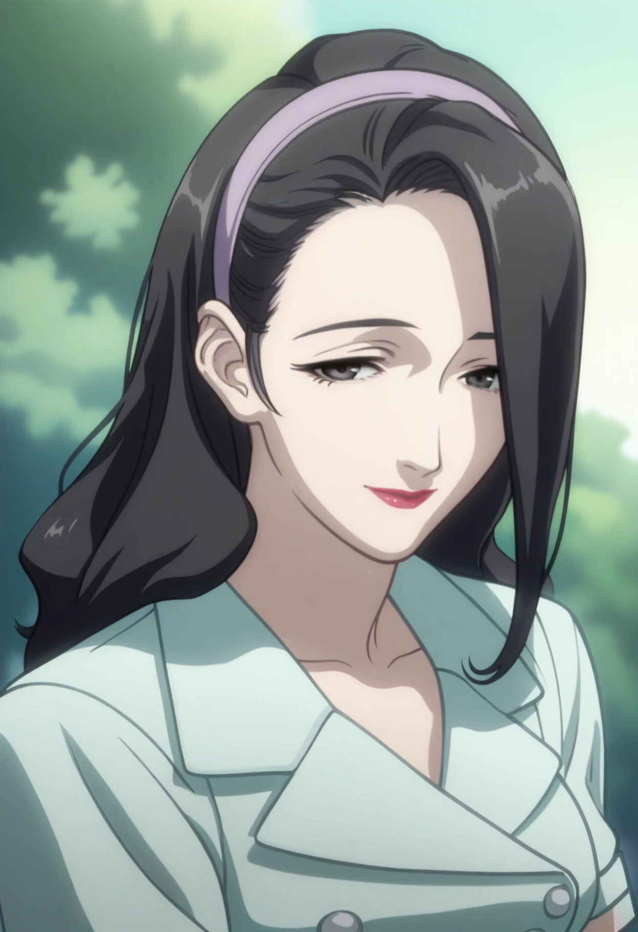 Marnie, 1girl, black hair, long hair, black eyes, hairband, lipstick, breasts,