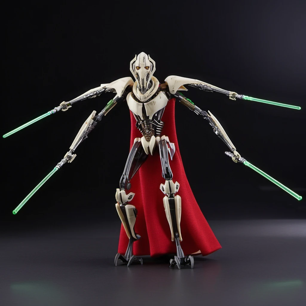 Grievous is depicted as a brilliant military strategist who serves as the Supreme Commander of the Confederacy of Independent Systems' Droid Armies during the Clone Wars. He is a powerful Kaleesh cyborg who has mastered all forms of lightsaber combat under the tutelage of Count Dooku to rival the Force abilities of the Jedi of the Galactic Republic. Grievous harbors an intense hatred of the Jedi and gains a reputation as a feared and ruthless Jedi hunter who collects the lightsabers of his fallen victims as trophies. He develops a rivalry with Jedi Master Obi-Wan Kenobi, whom he clashes with numerous times during the war, and is killed by Kenobi during their final confrontation in Revenge of the Sith.