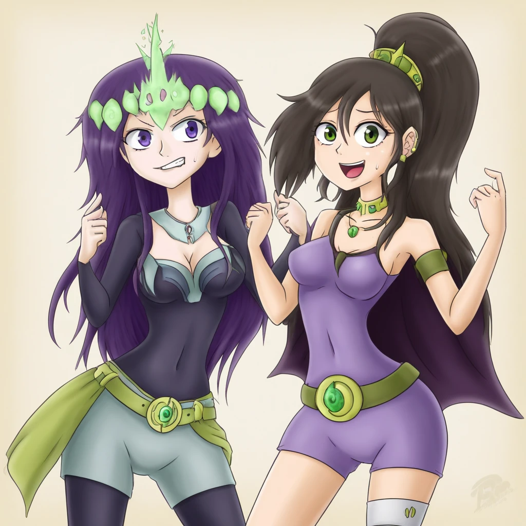 Spiritual beast tamer winda, green eyes, green hair, long hair, ponytail, high ponytail, thigh strap, metal choker,