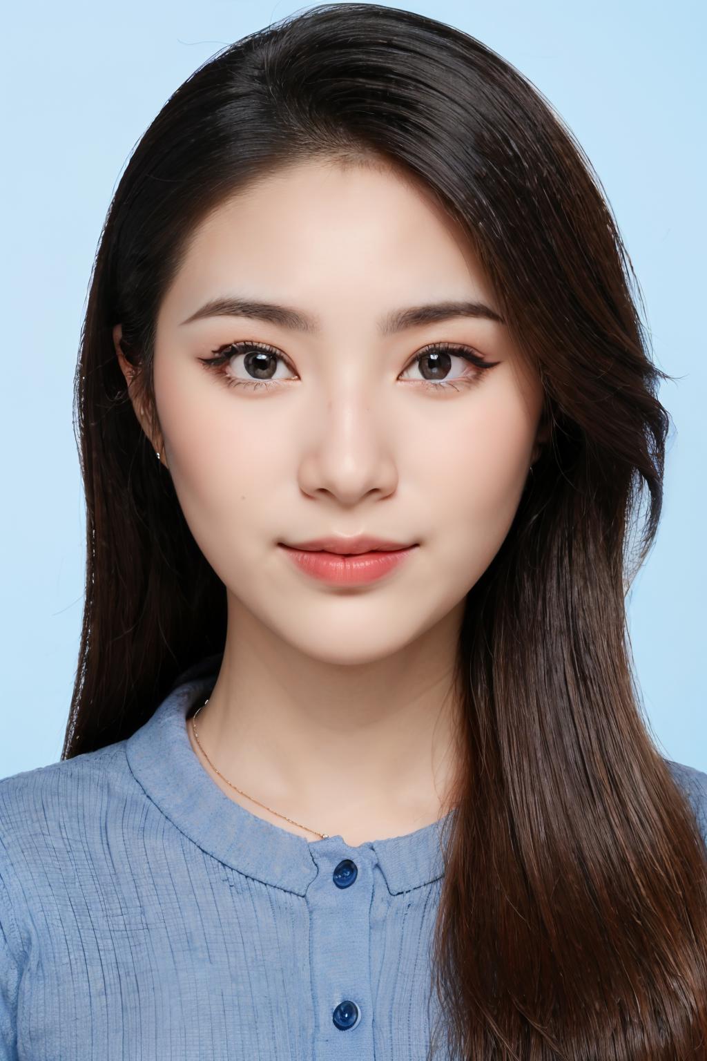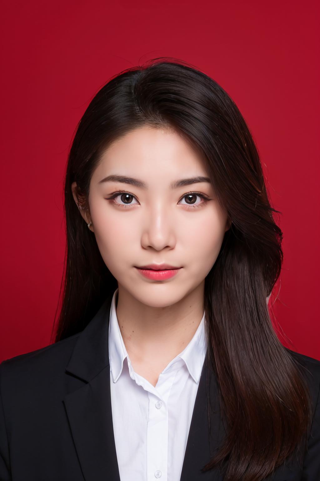 (3)正面提示词举例:identification photo,1 girl,long hair,bangs,looking at viewer,(white shirt,blue tie,red background:1.3),happy,smile,负面提示词自己写,底色可以换成white/blue/grey background;