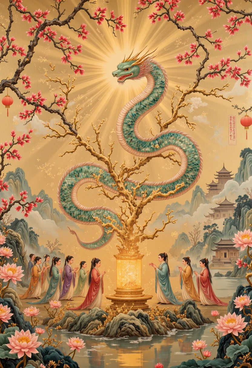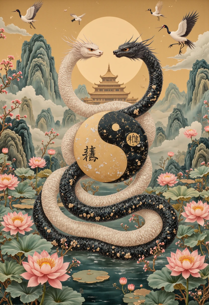 • Nature-Centric Art: Serpents in harmony with lush landscapes featuring lotus ponds, ancient pagodas, and cherry blossoms.