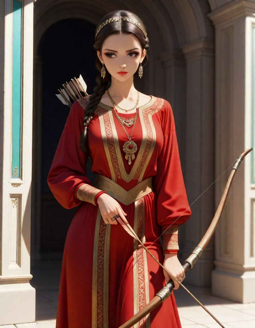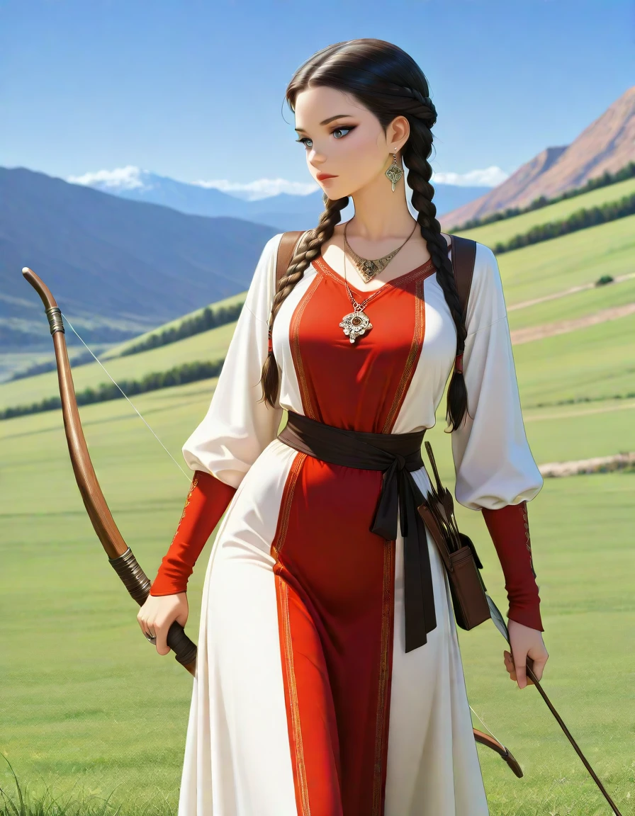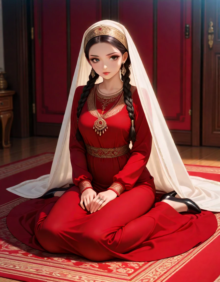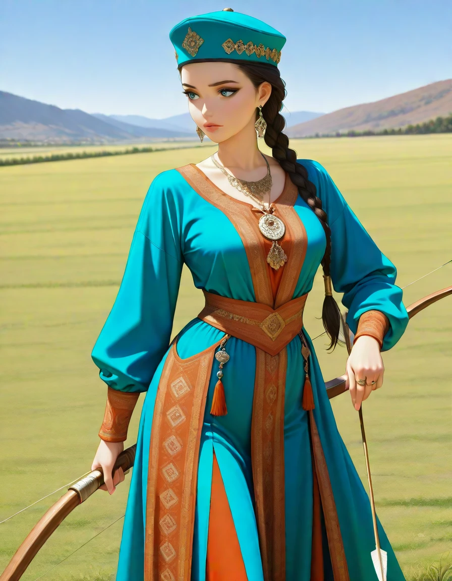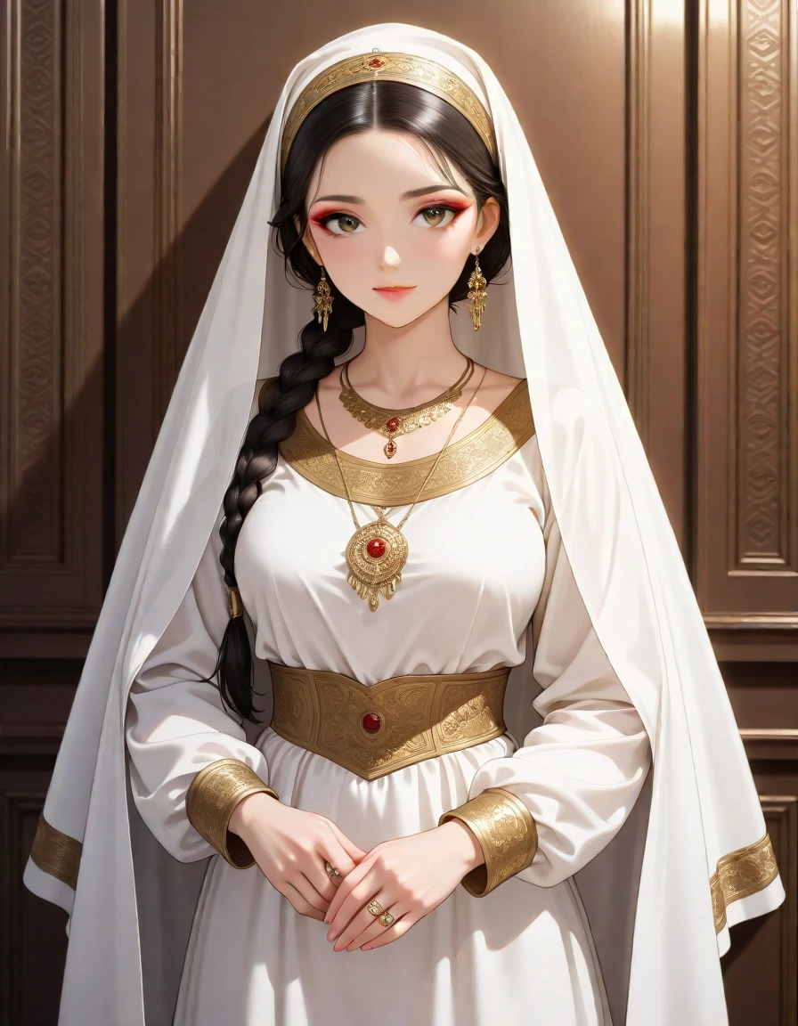 centralasia, jewelry, long sleeves, dress, ring, earrings, necklace, braid, makeup ,
