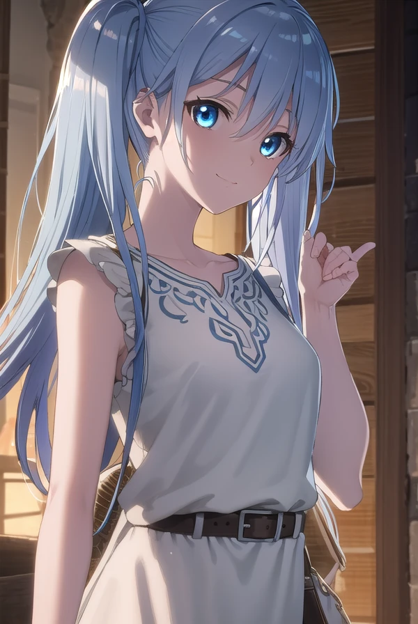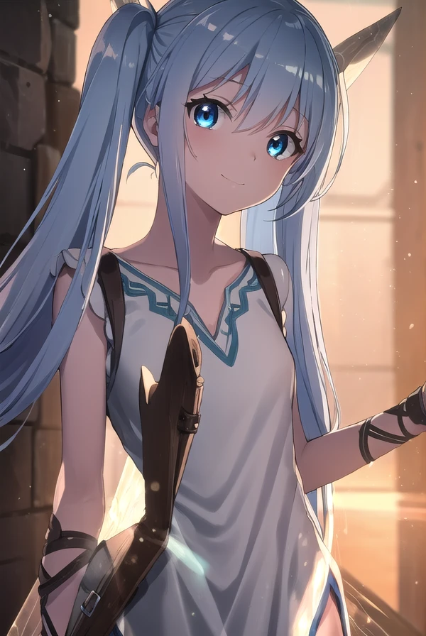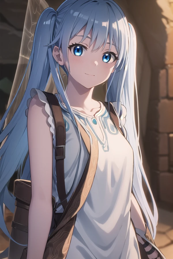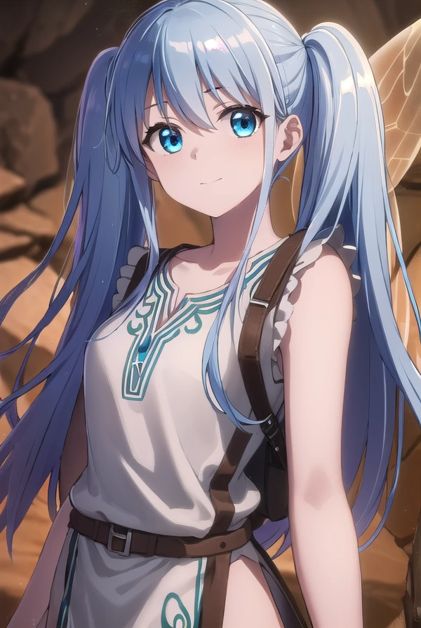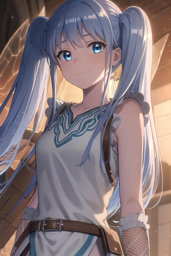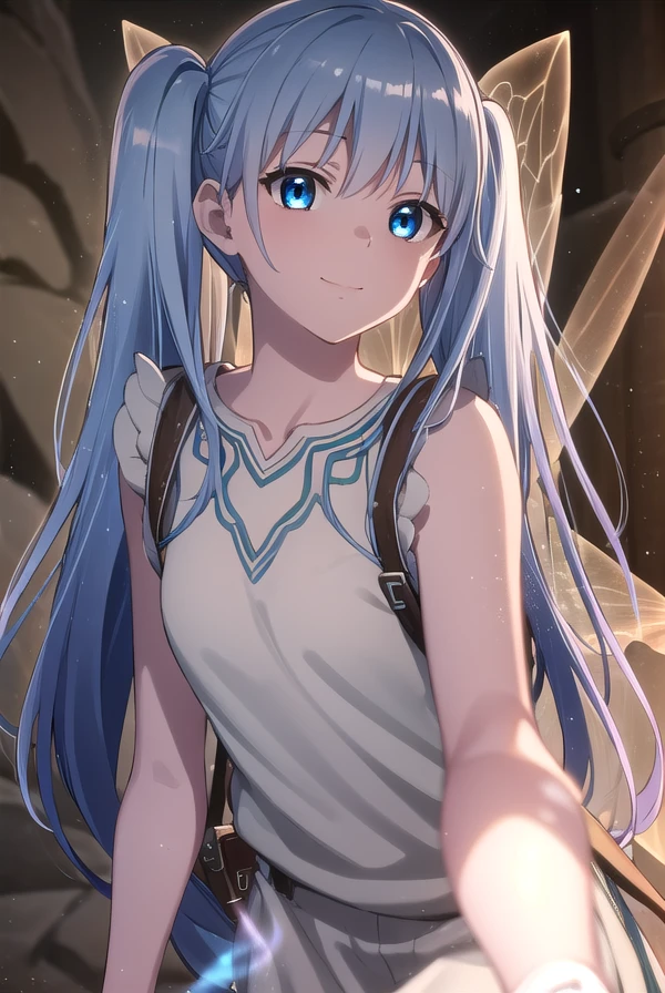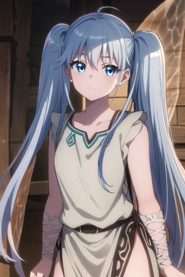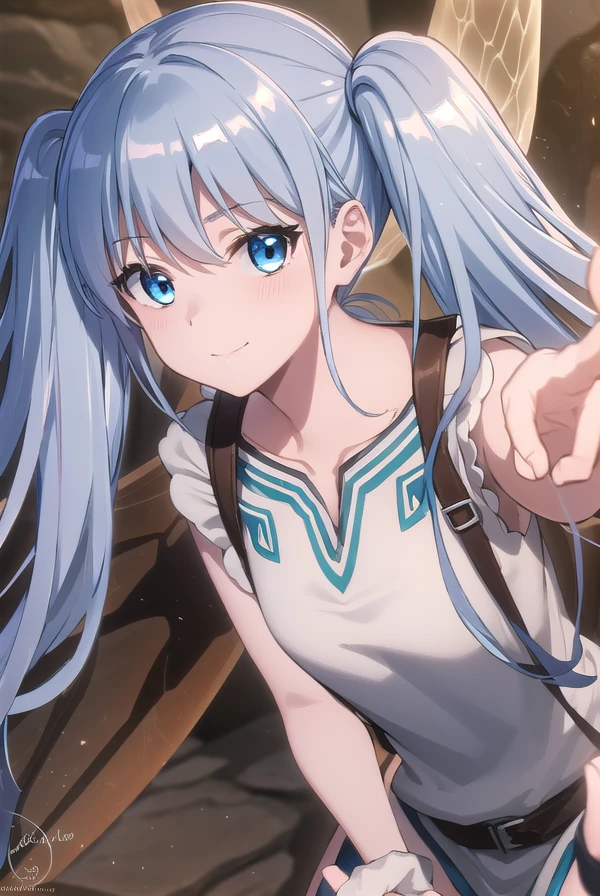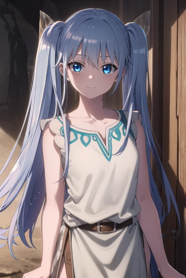 lafanpan, long hair, blue eyes, twintails, blue hair,