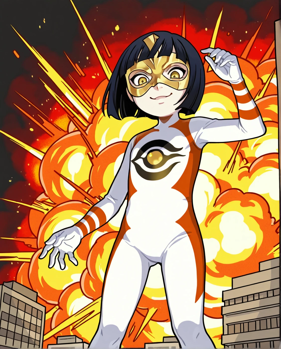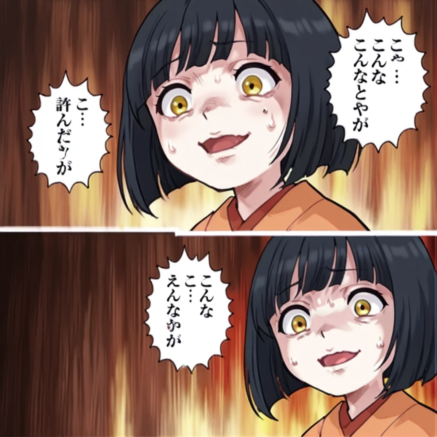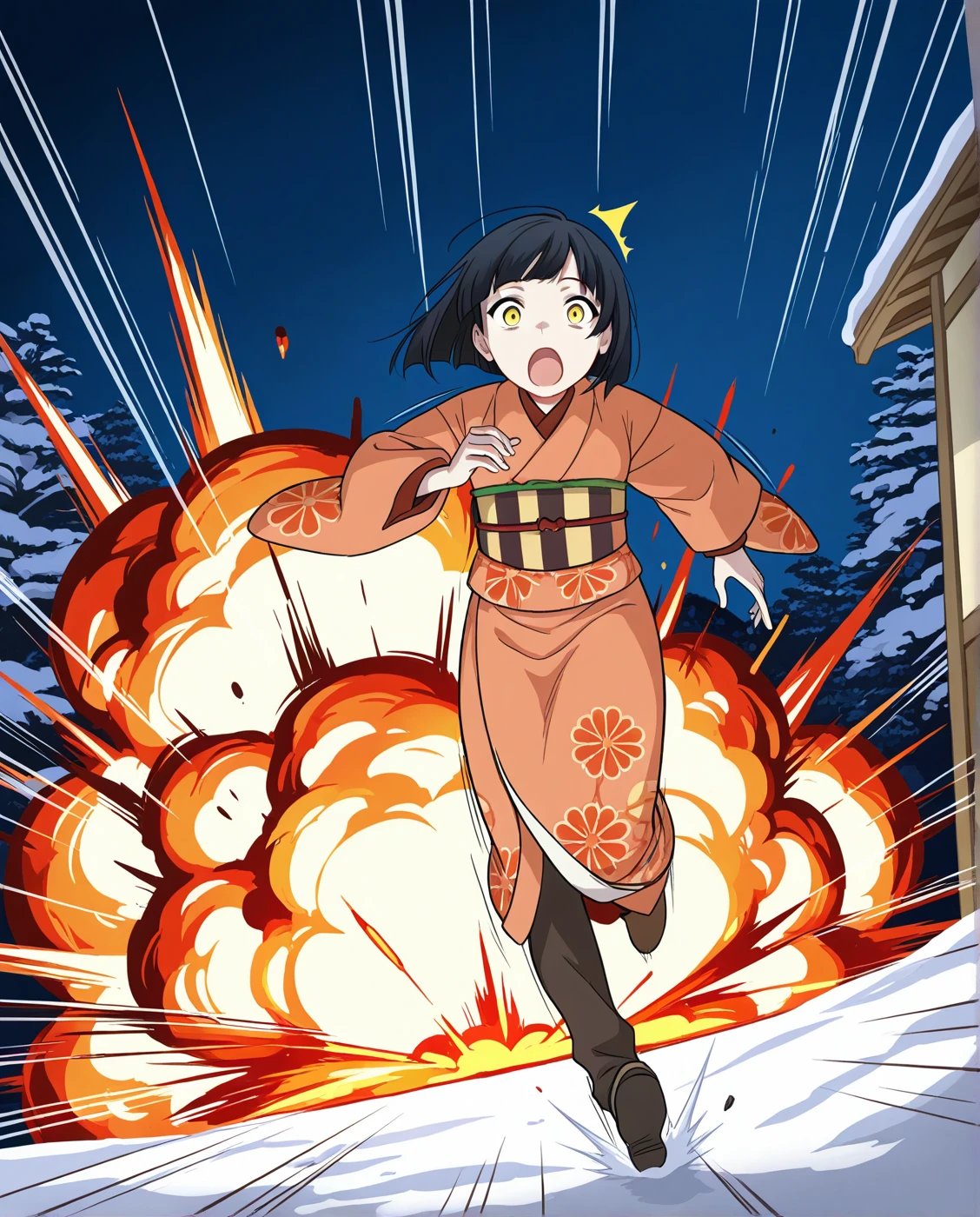 recommend: short hair, orange kimono, japanese clothes, bob cut, yellow eyes,