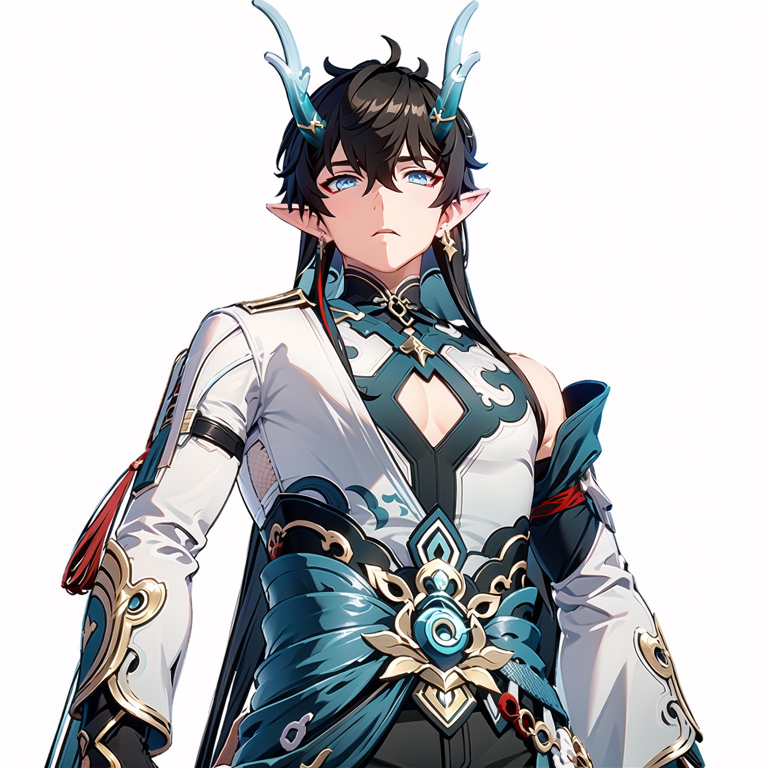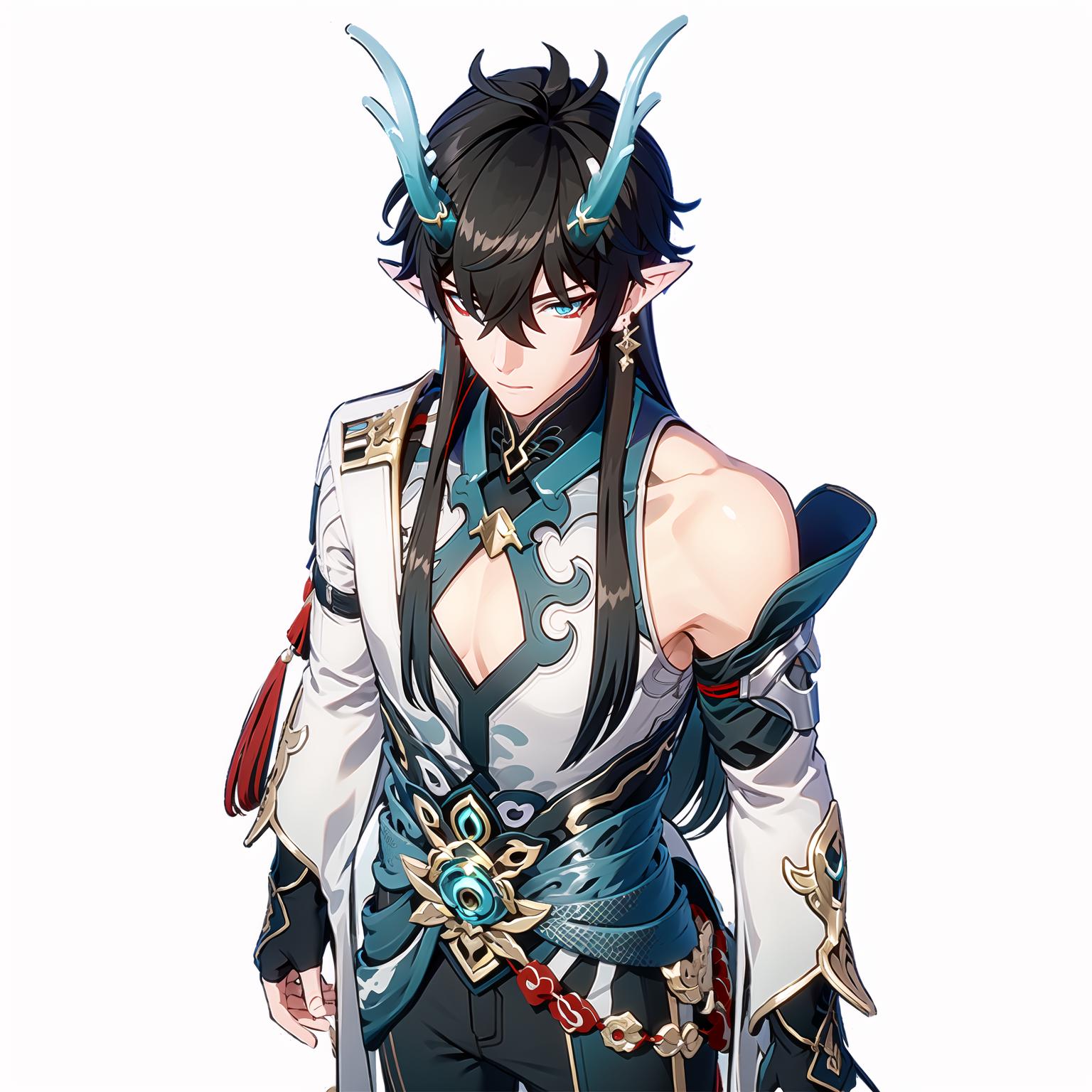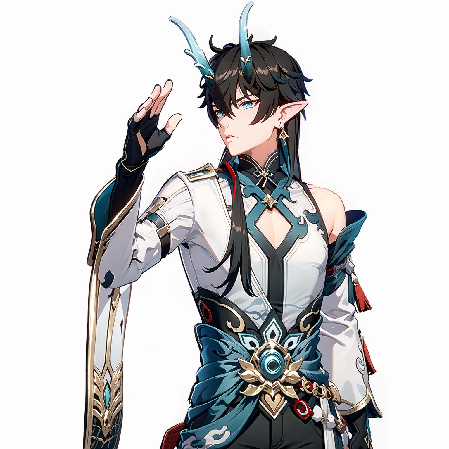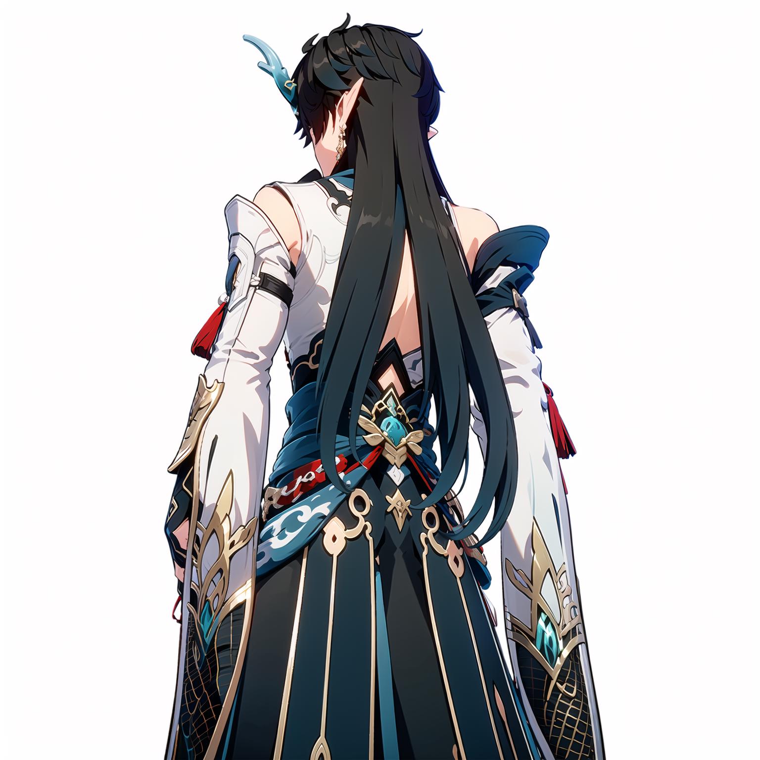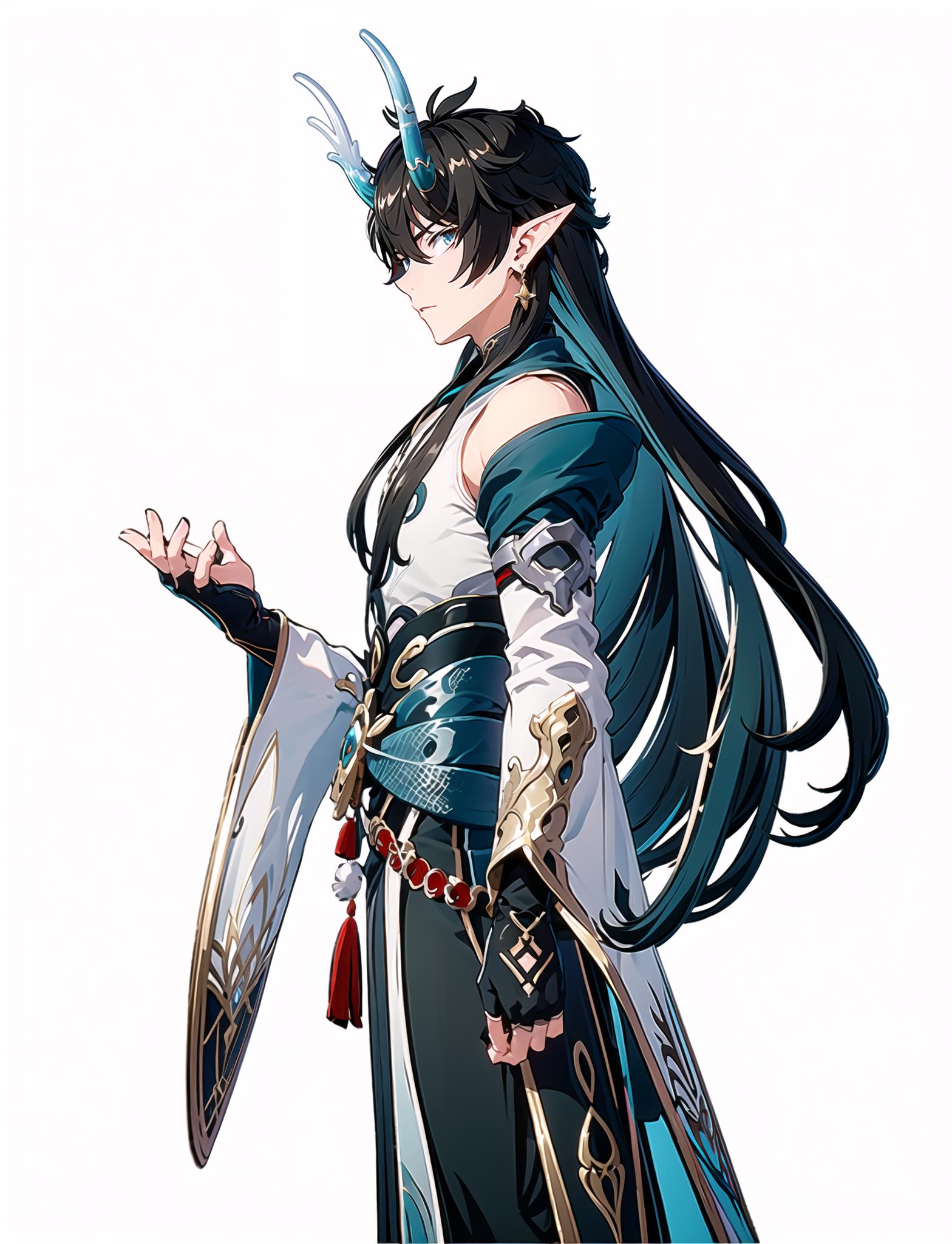 5.总触发词为YINYUE,头部的所有特征我加入到了“face,yinyue_horns”中,上半身的所有特征加入到了“clothes,belt,sleeves ”中,下半身的所有特征加入到了“pants,boots”中,请根据你想生成肖像或者全身照合理安排这些提示词。同时,你可以使用“looking to the side,looking at viewer”控制饮月脸的朝向,“from above,from below"控制视角,from front position,from side,from behind”也对应了人物不同视角。