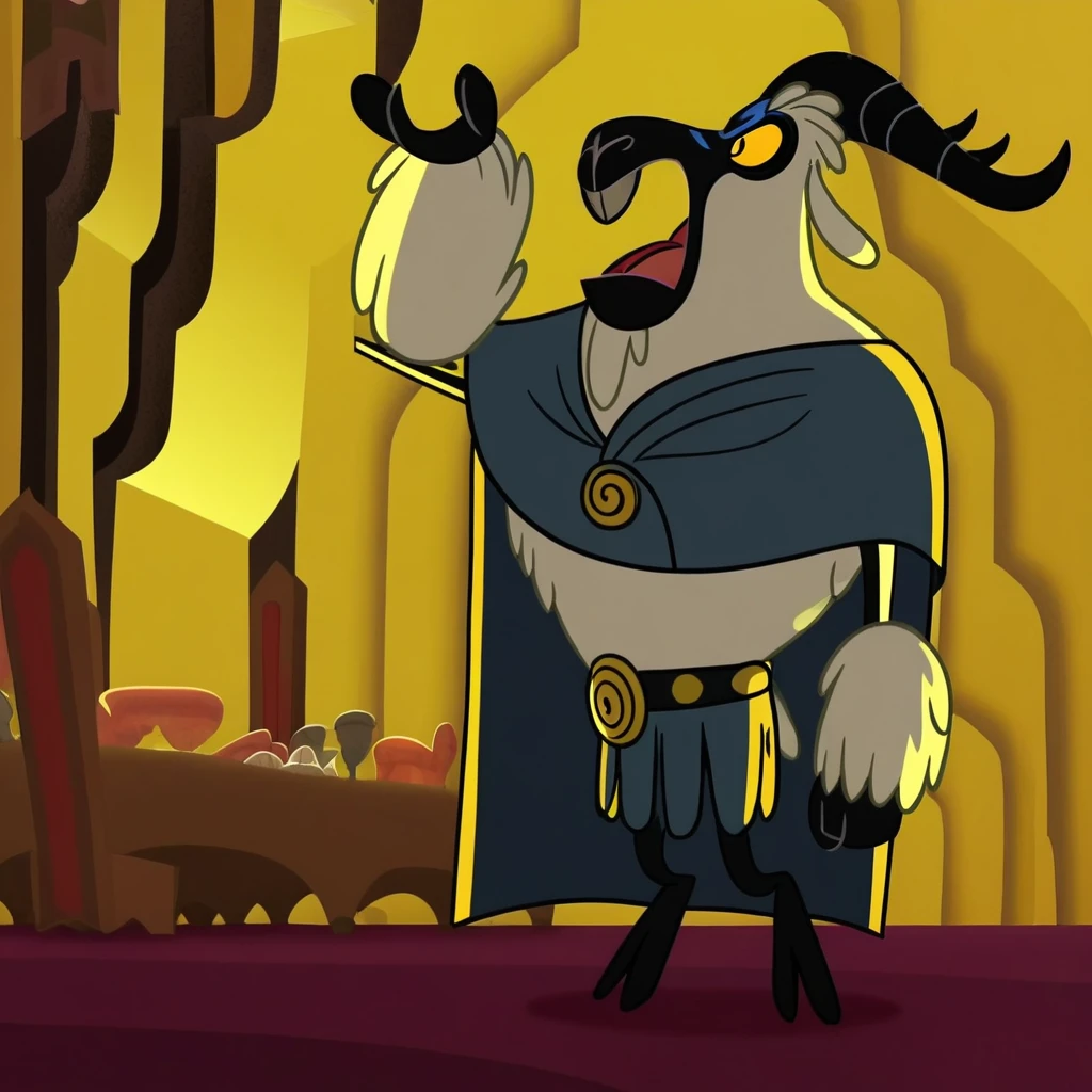 1boy, male, furry, animal, anthro, goat, white fur, horns, black horns, buckteeth, yellow eyes, viking kilt, cape, nordic belt