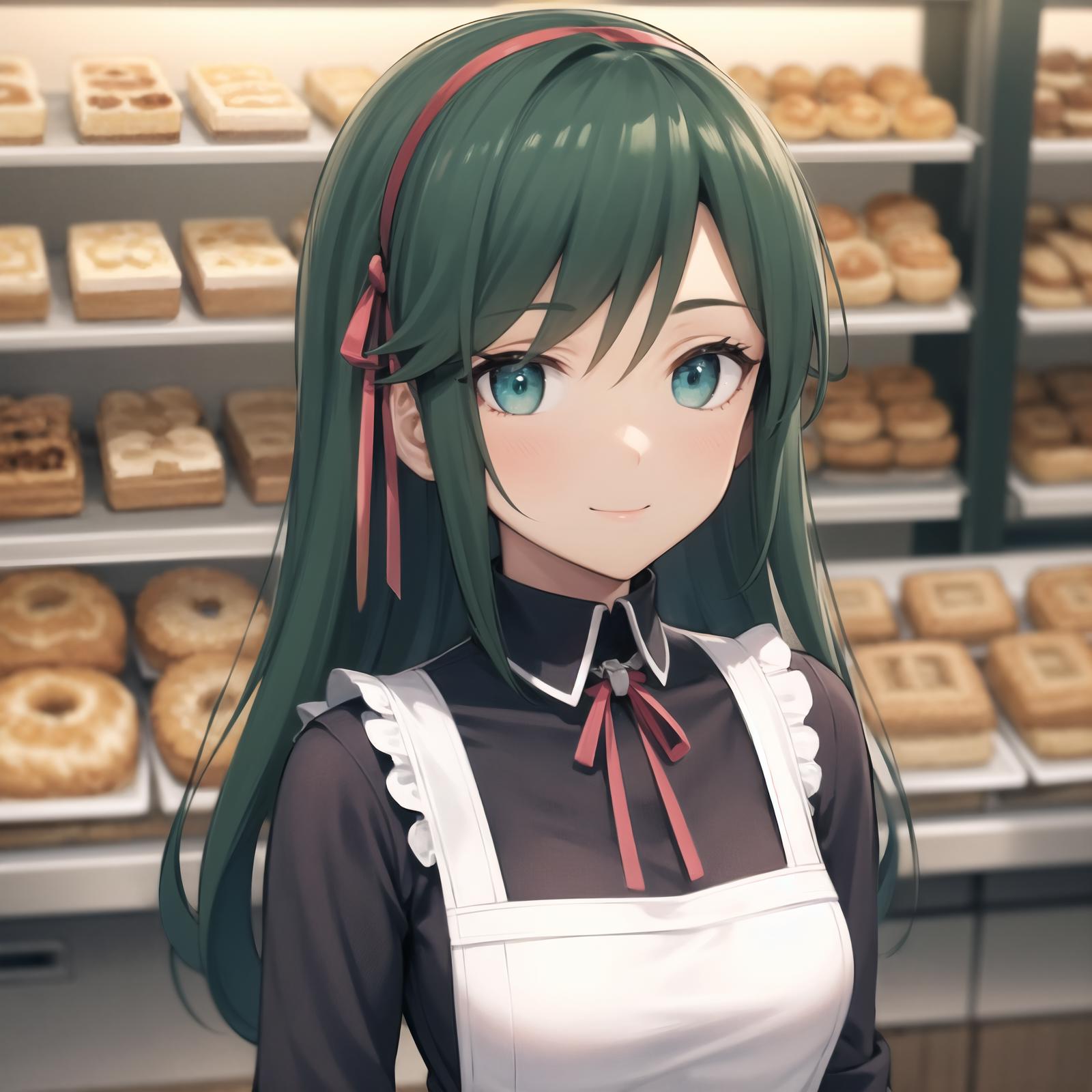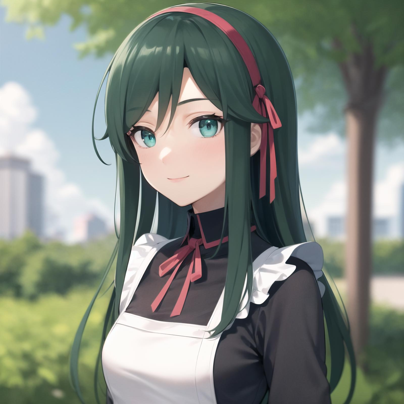 <lora:Bennet-08:0.8>, Bennet, aqua eyes, green hair, long hair, small breasts, hair ribbon, red headband,