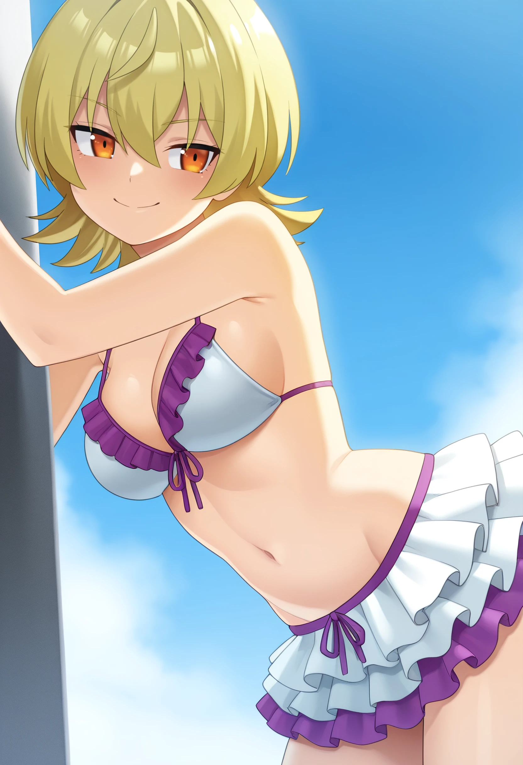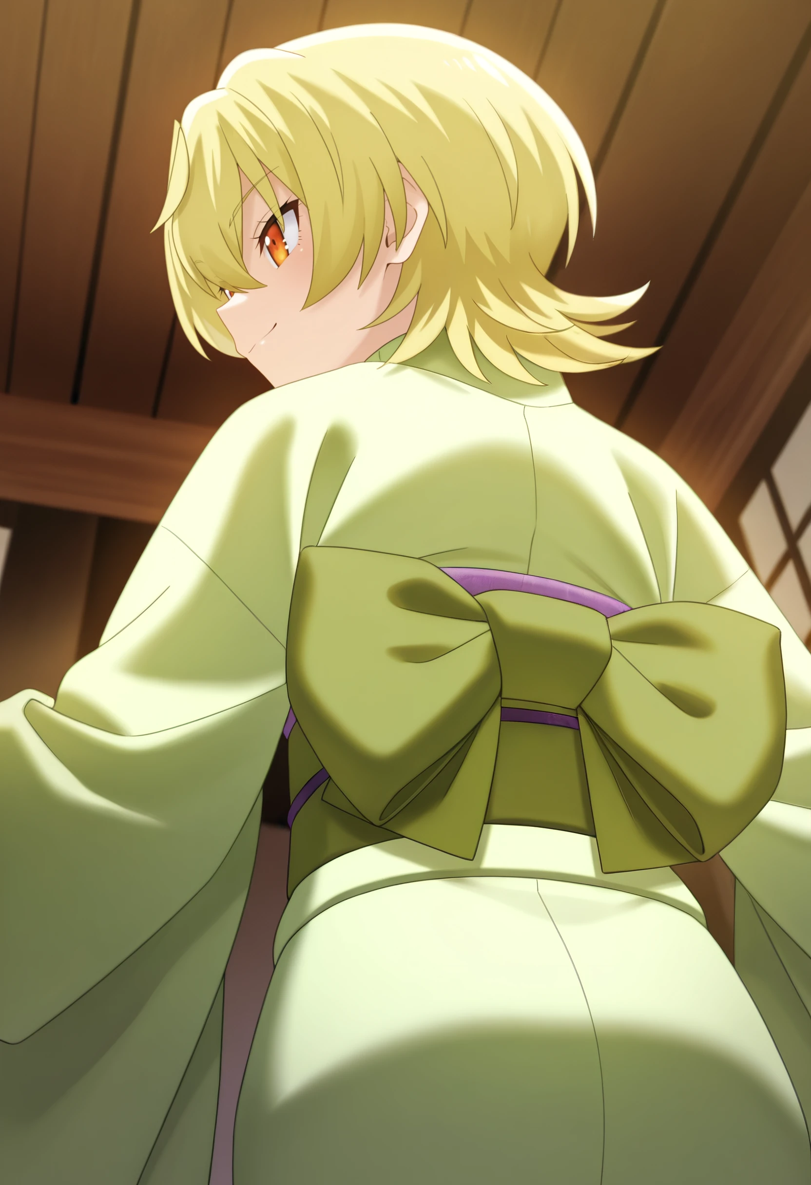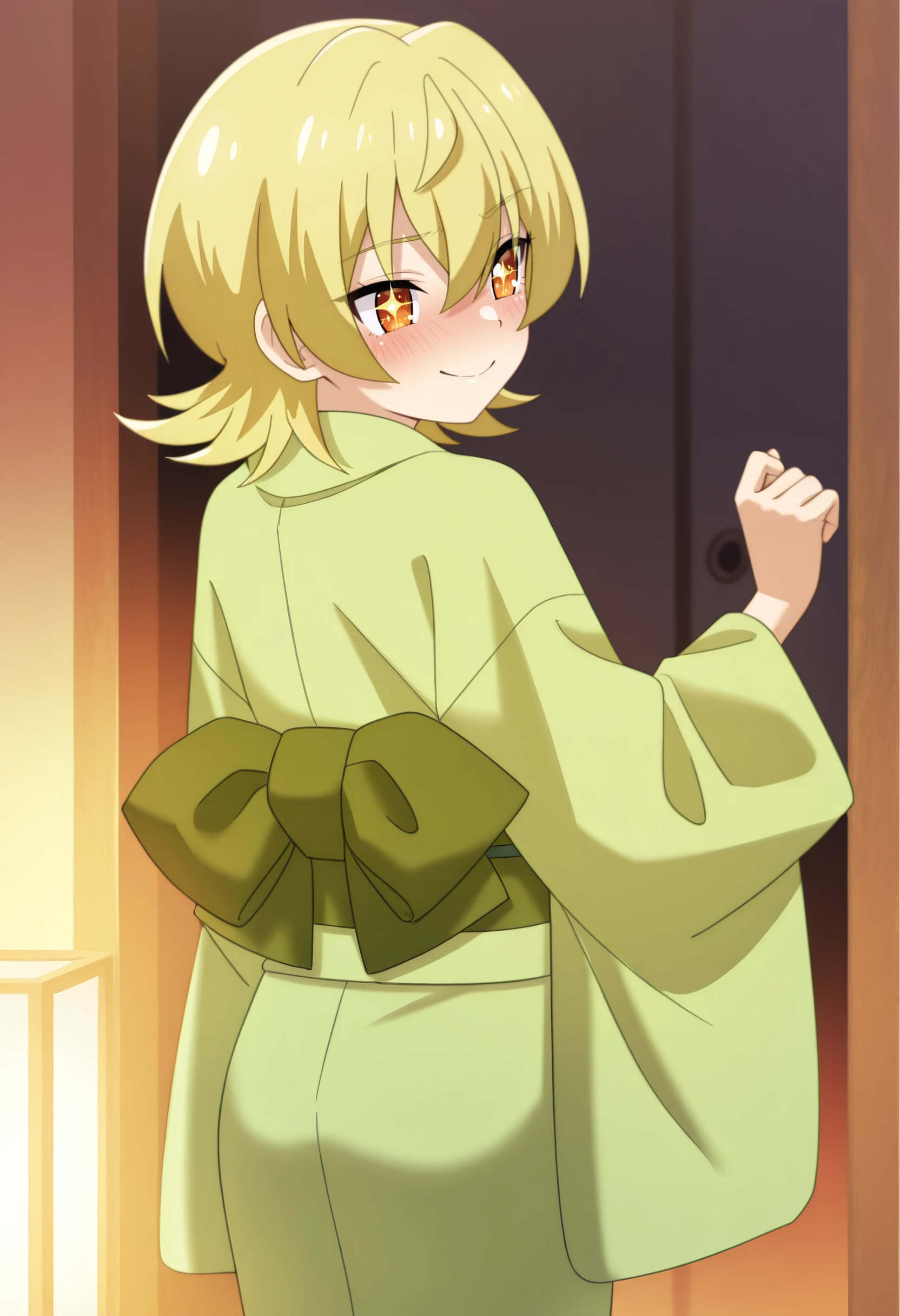 NKTYuzu, blonde hair, short hair, orange eyes, hair between eyes, flipped hair,