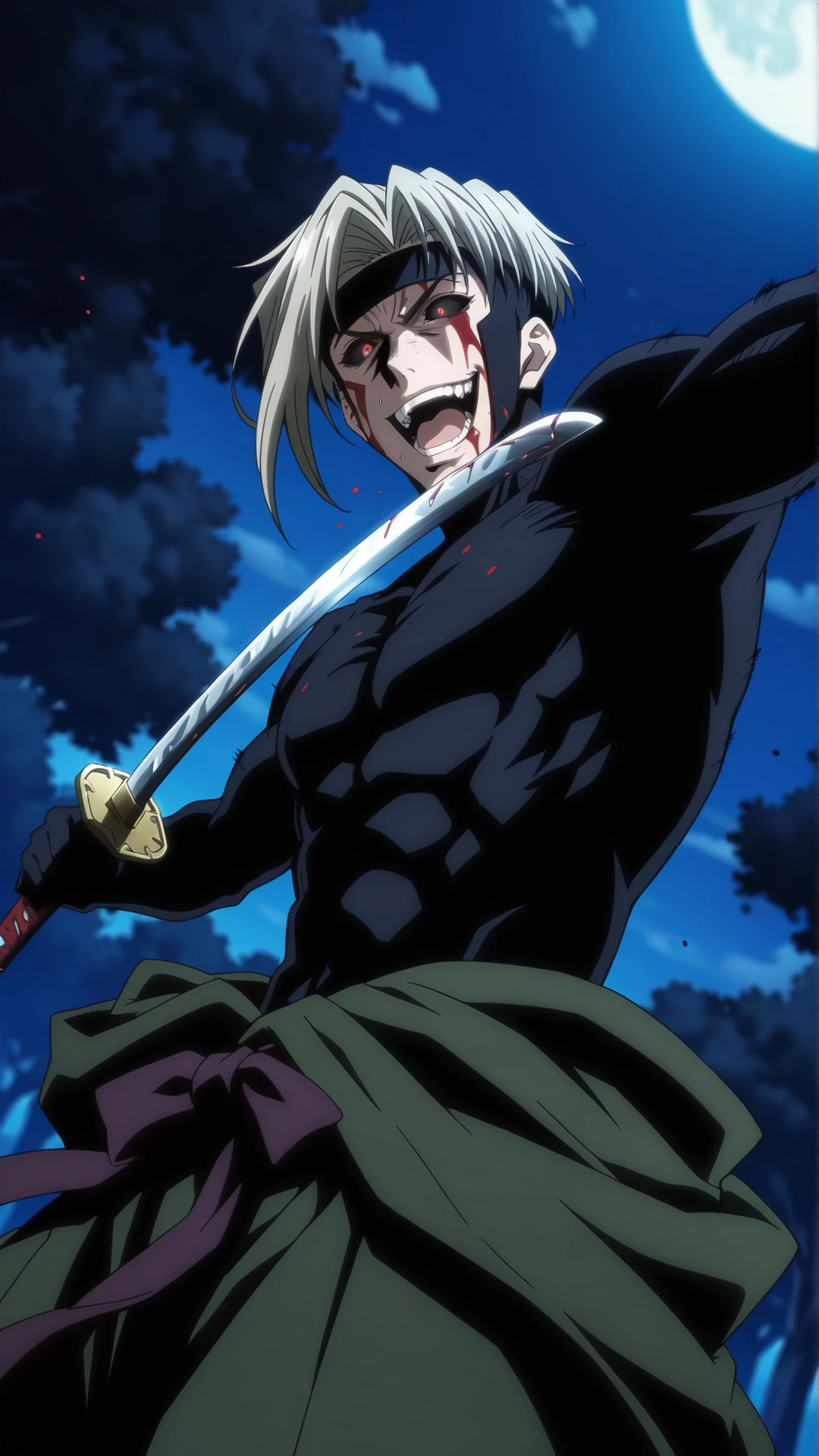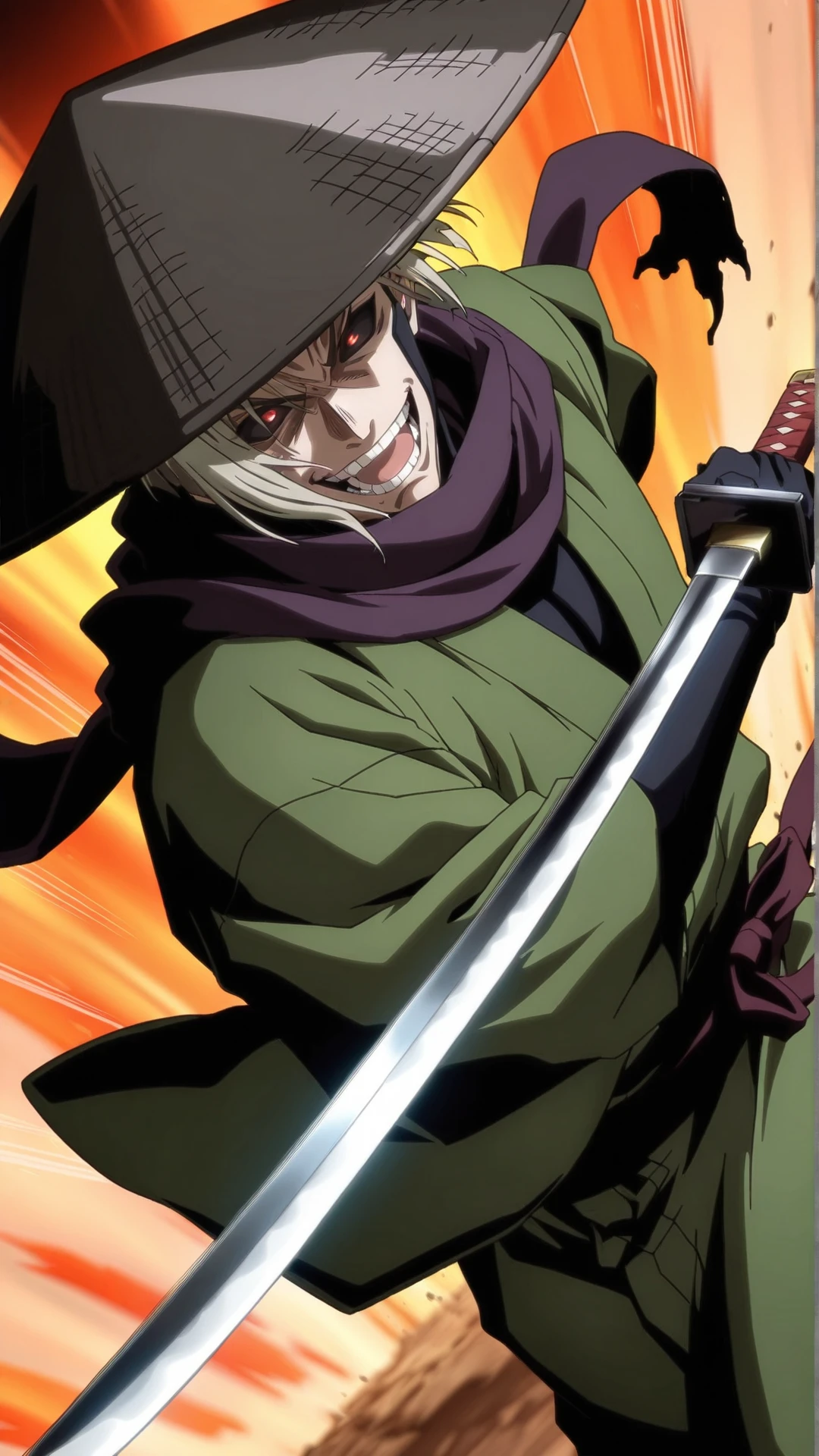 udo_jin-e\(rurouni kenshin\),black sclera, colored sclera, grey hair, red eyes,