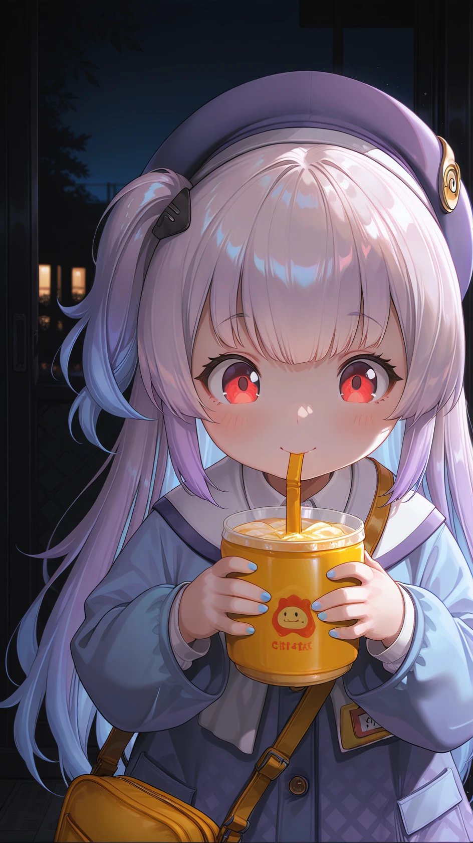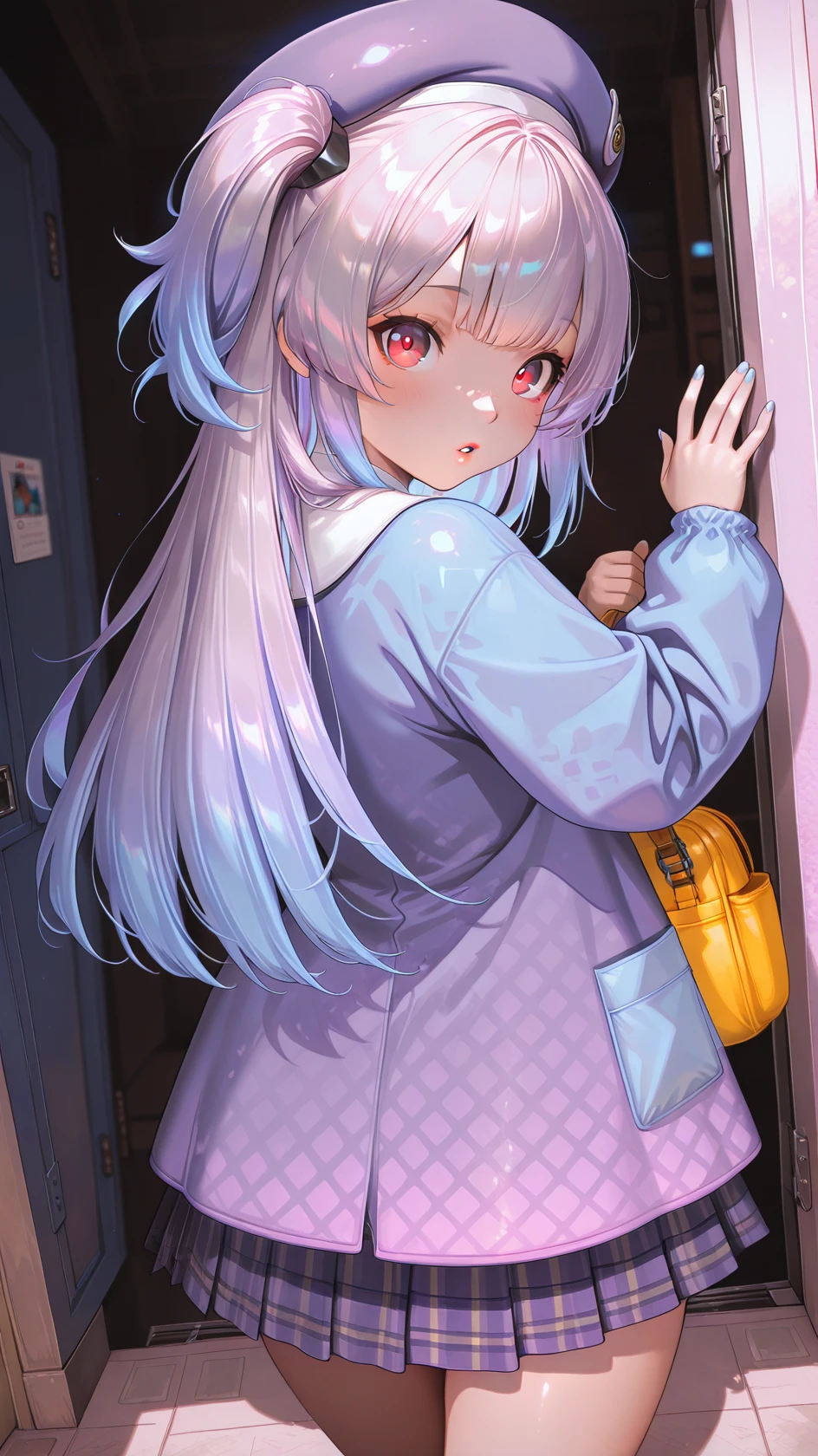 Example prompt : 1girl, long hair, blush, bangs, red eyes, long sleeves, hat, one side up,, purple hair, grey hair, multicolored hair, blue headwear, blue nails, purple headwear, kindergarten uniform, skirt, pleated skirt, shoes, socks, black footwear, plaid, beret, plaid skirt, white socks