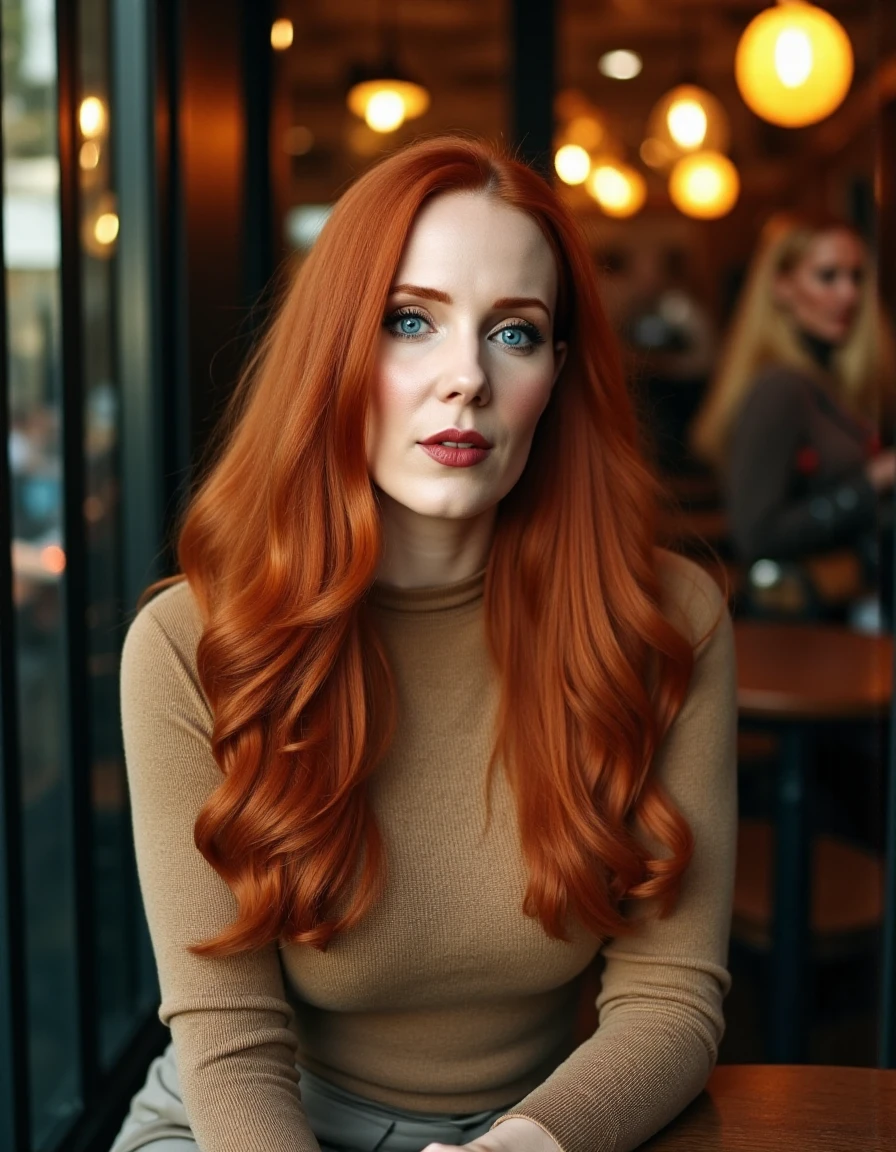 cinematic film still <lora:SimoneSimonsQuiron_FLUX-000001:1.2> SimoneSimonsQuiron, a close up of a woman with long red hair and blue eyes, Dip: Bending your elbows and shoulders to lower and raise your body, shallow depth of field, vignette, highly detailed, high budget, bokeh, cinemascope, moody, epic, gorgeous, film grain, grainyπππ
