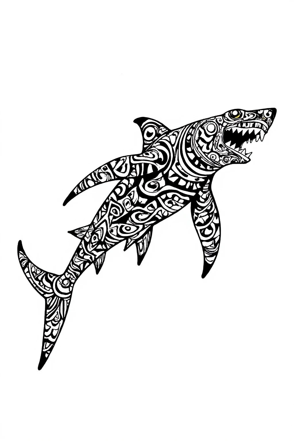Tribal patterns and dynamic postures, imagine a tribal - patterned shark, swimming fast, body covered in unique patterns, fierce and agile.